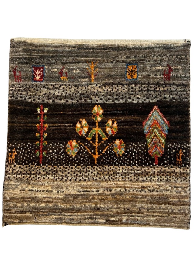 GABBEH 「生命の樹とヤギ」ウール100% 草木染め 約41×41cm SHIRAZ産