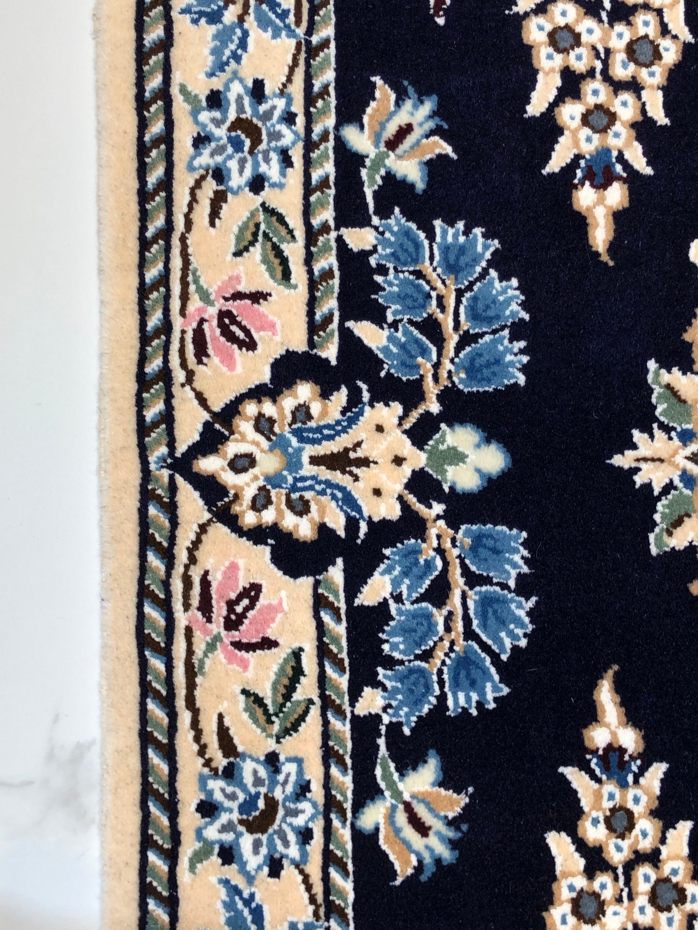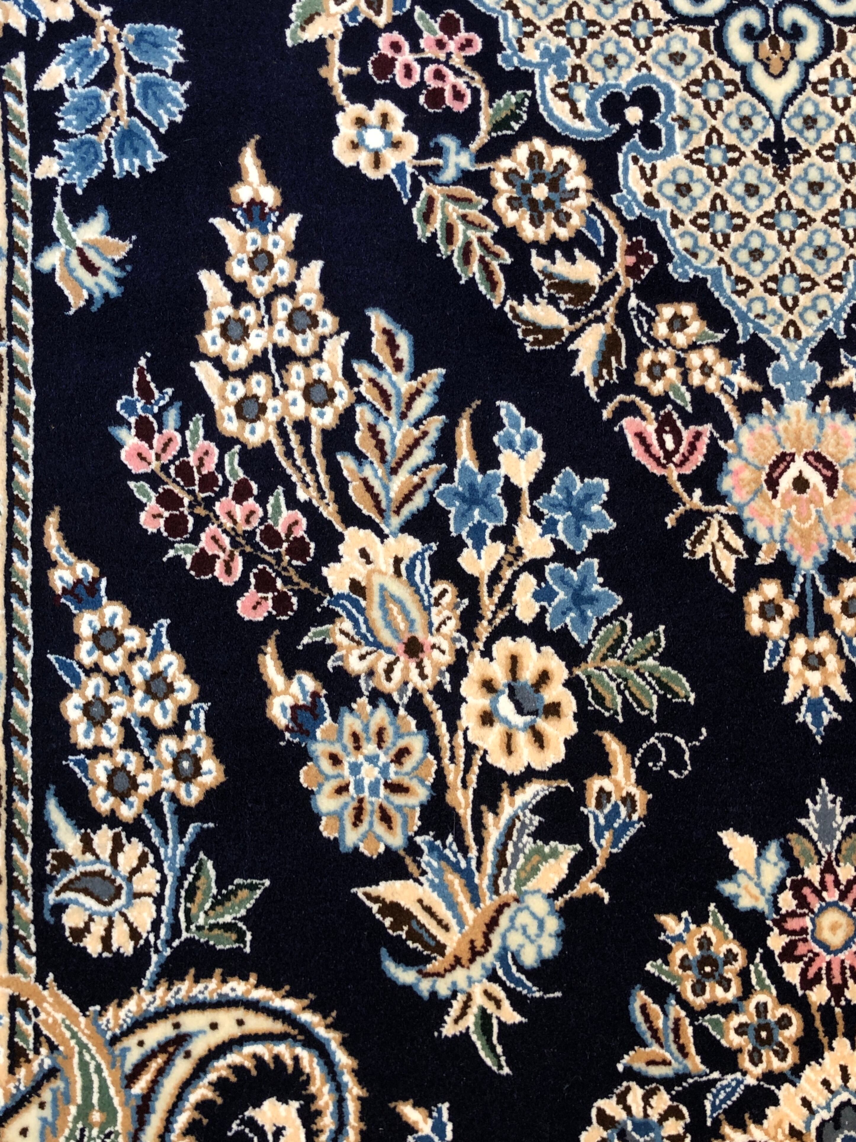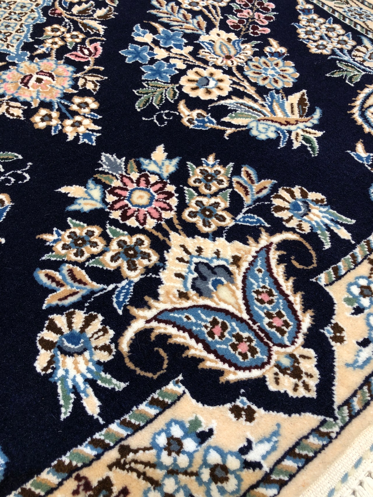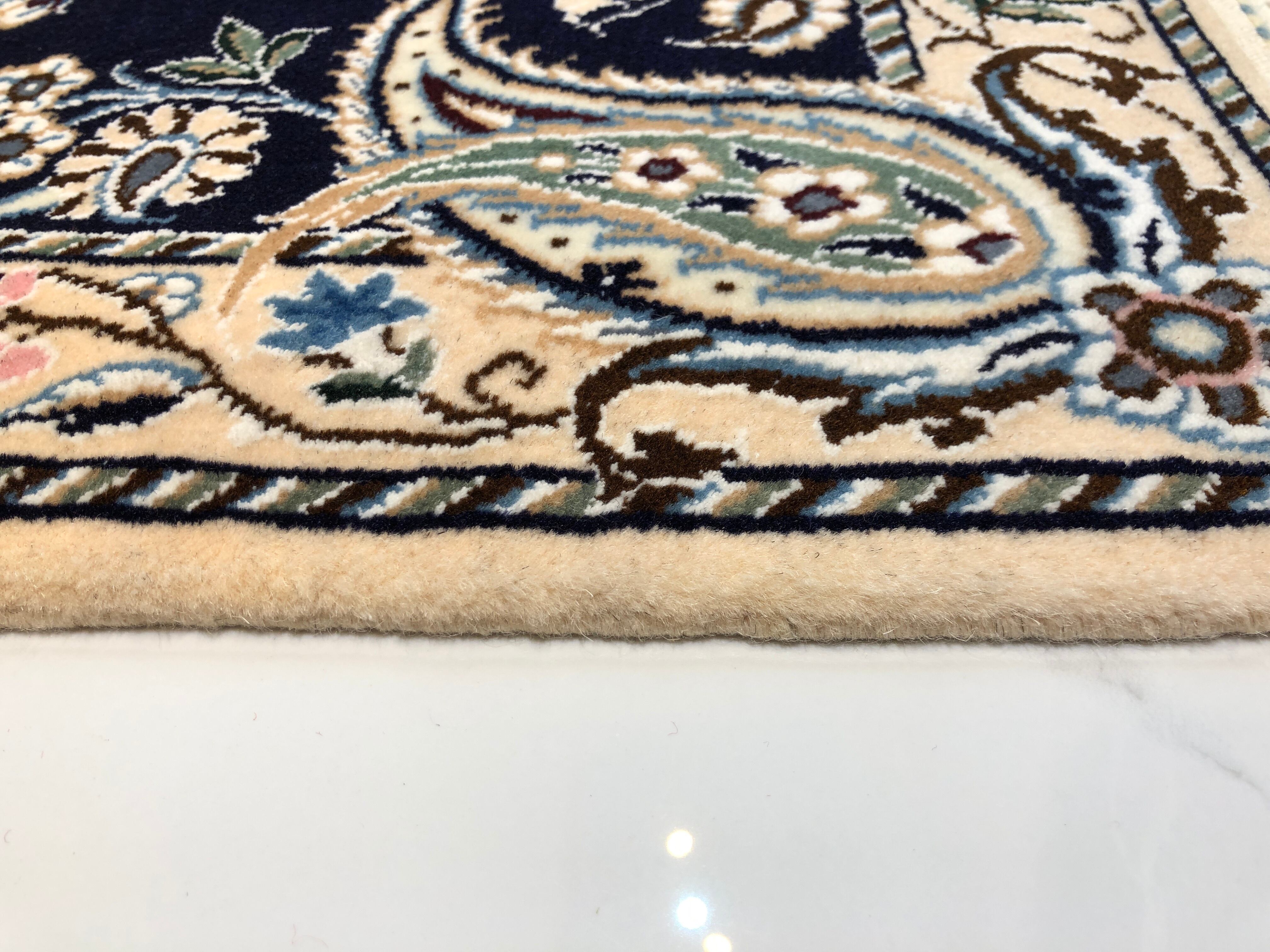ナイン絨毯は、緻密な織りの職人技と質の高いウール素材で人気が高く、アイボリーやベージュを基調とした柔らかな色調で織られたエレガントなデザインで知られており、日本のみならず世界でも知られた絨毯です。