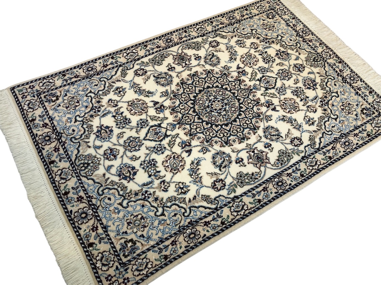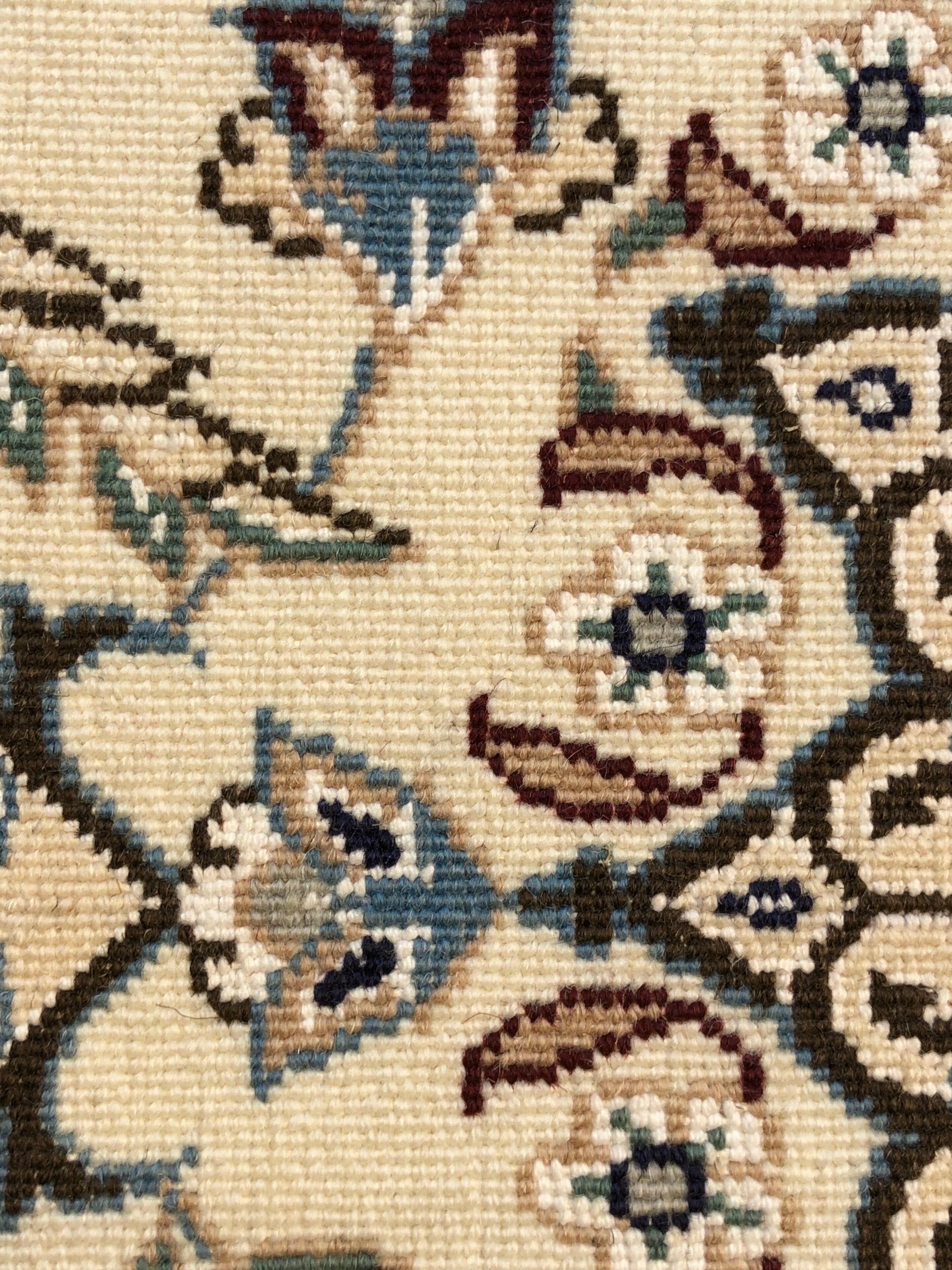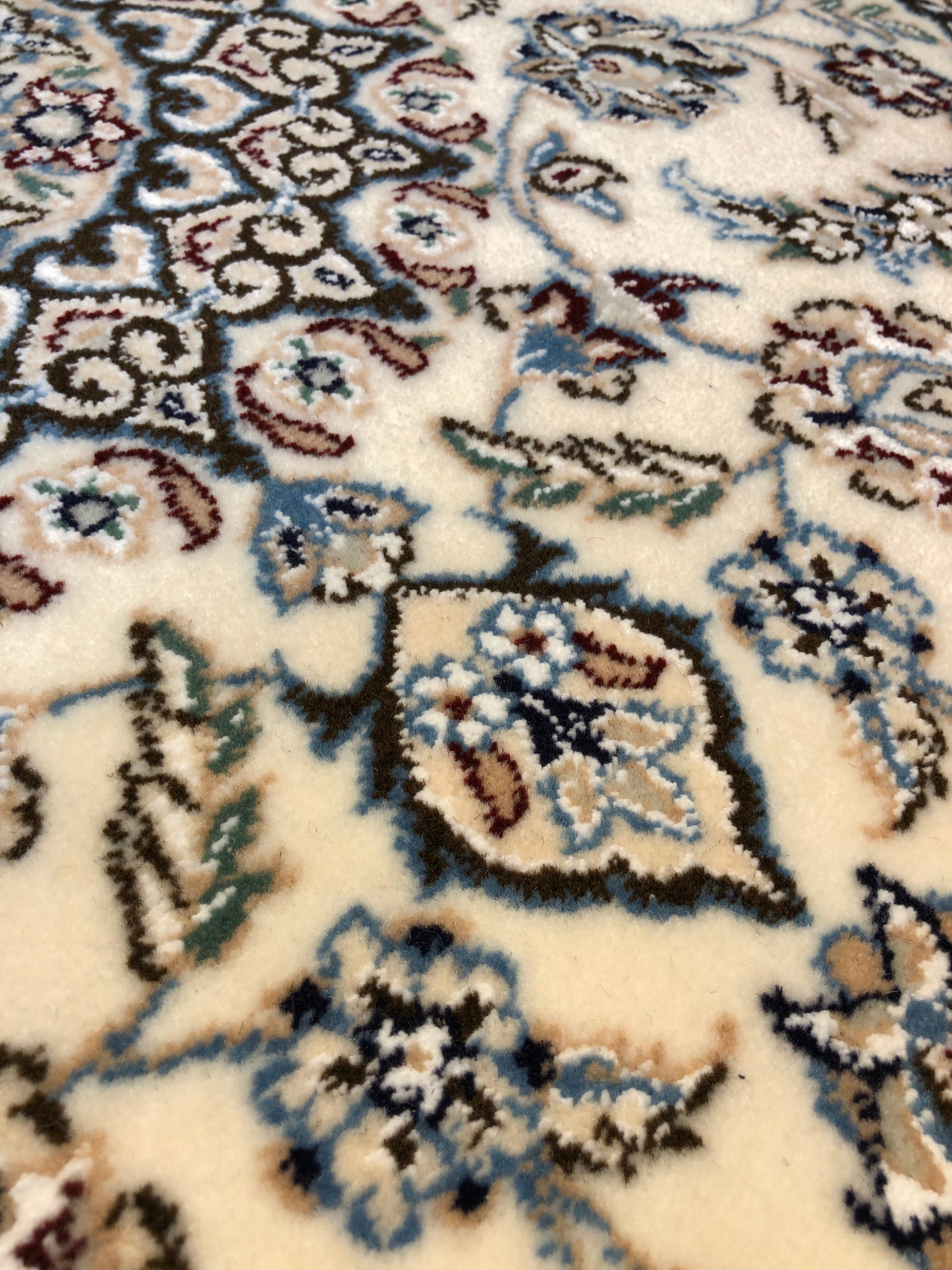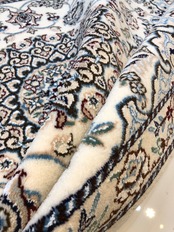 ナイン絨毯は、緻密な織りの職人技と質の高いウール素材で人気が高く、アイボリーやベージュを基調とした柔らかな色調で織られたエレガントなデザインで知られており、日本のみならず世界でも知られた絨毯です。