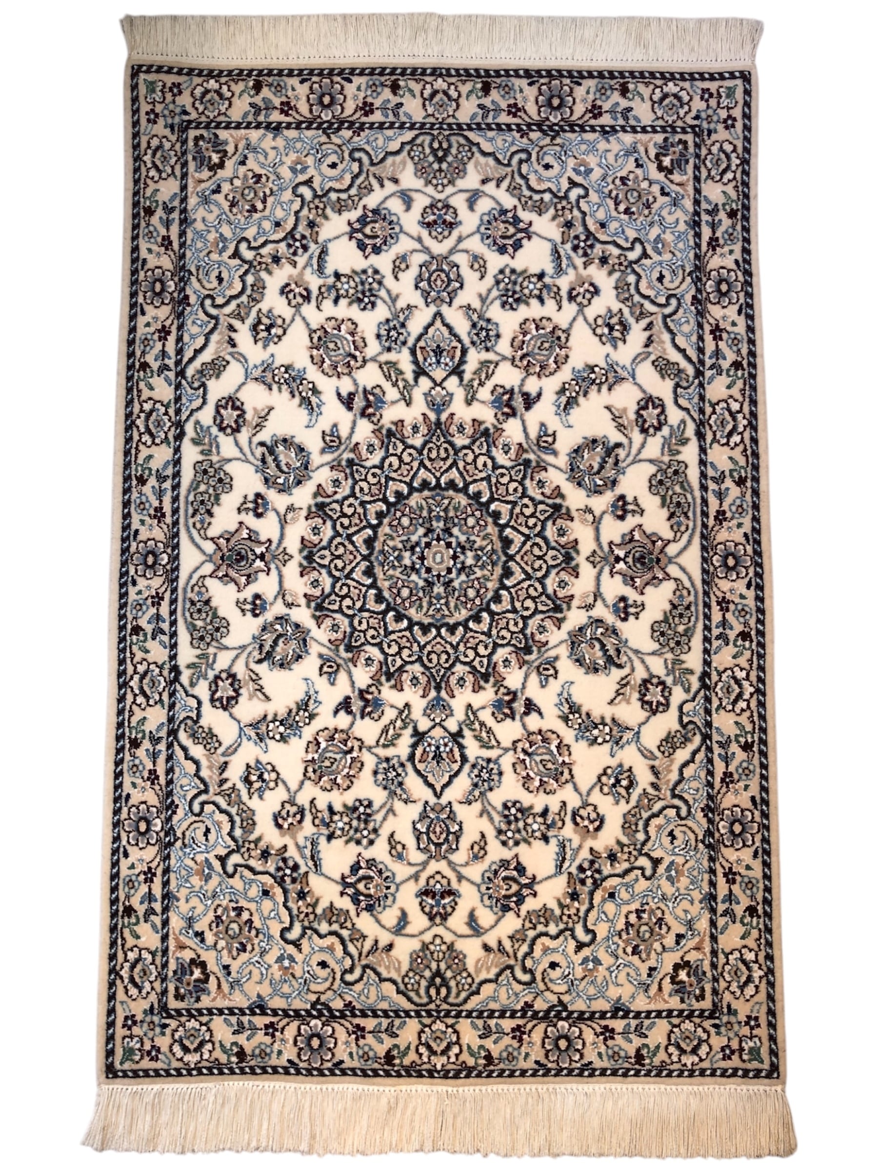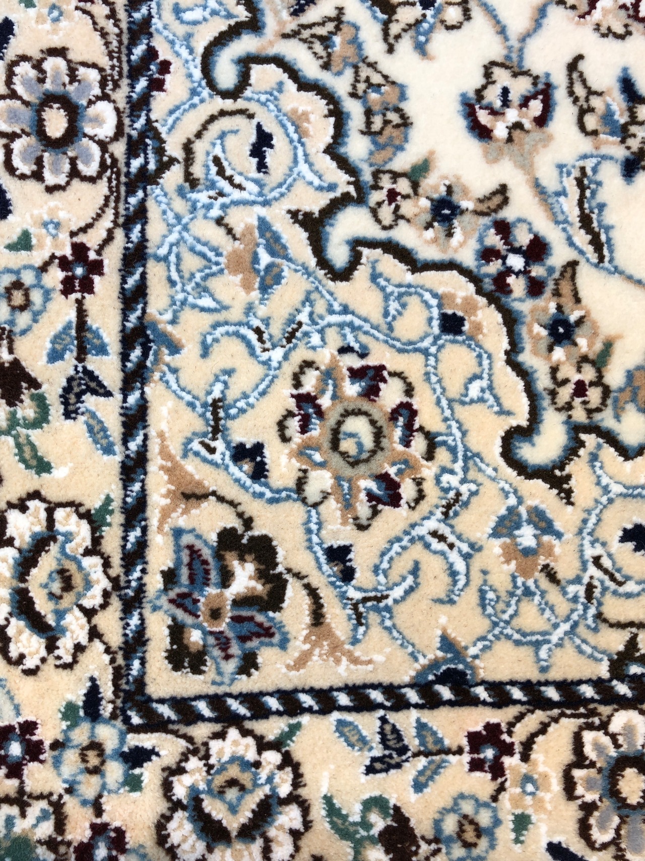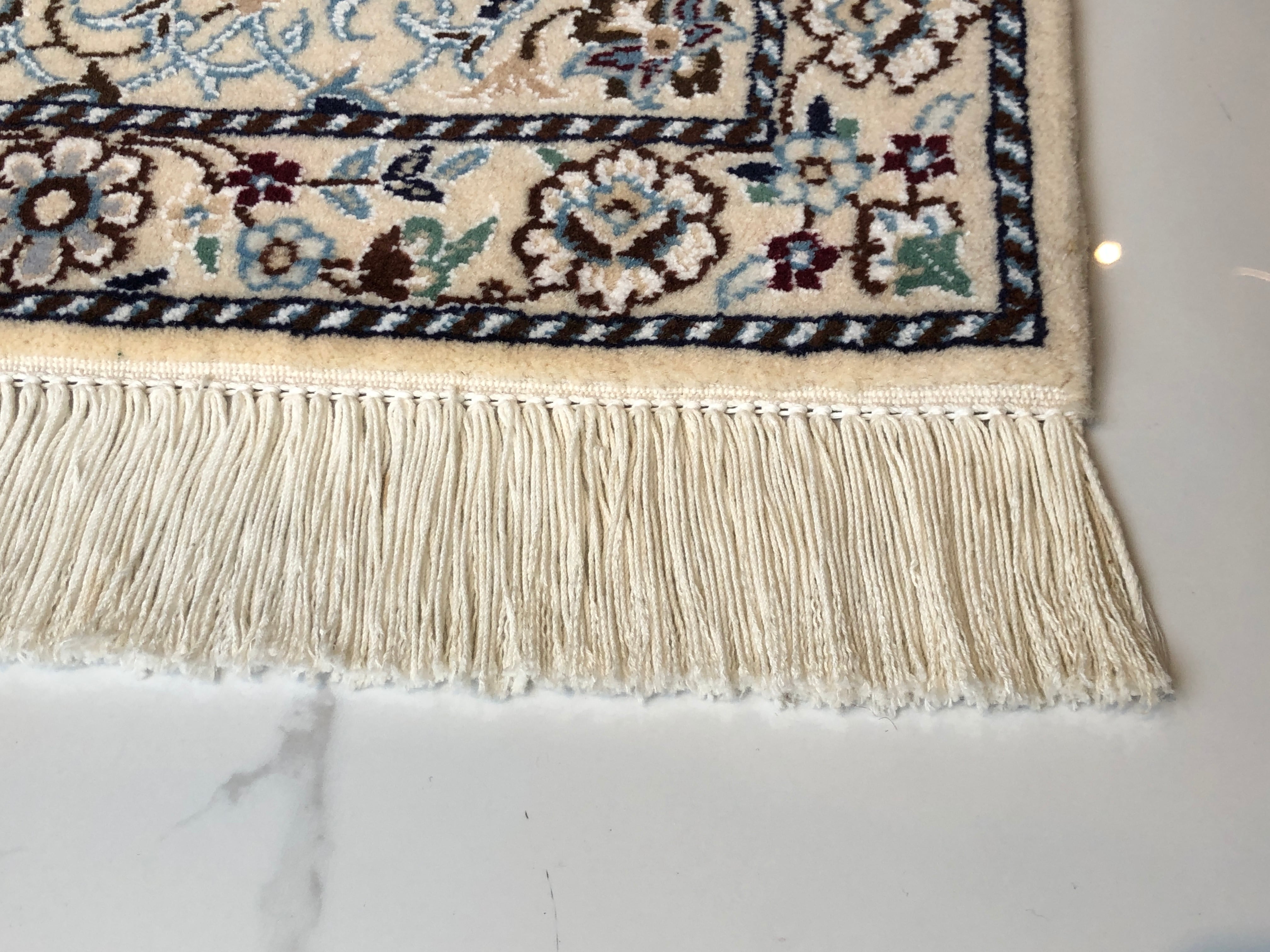 ナイン絨毯は、緻密な織りの職人技と質の高いウール素材で人気が高く、アイボリーやベージュを基調とした柔らかな色調で織られたエレガントなデザインで知られており、日本のみならず世界でも知られた絨毯です。