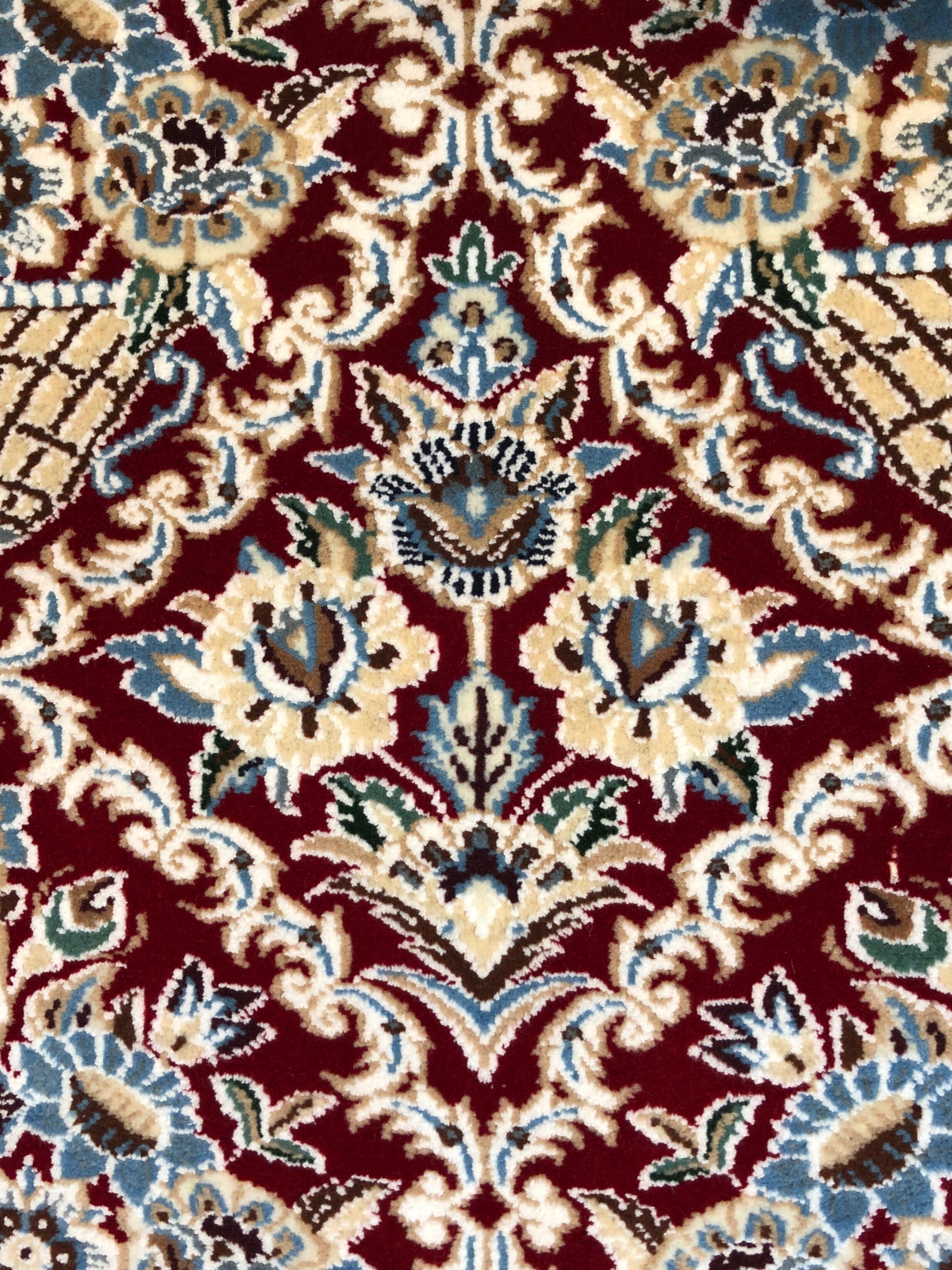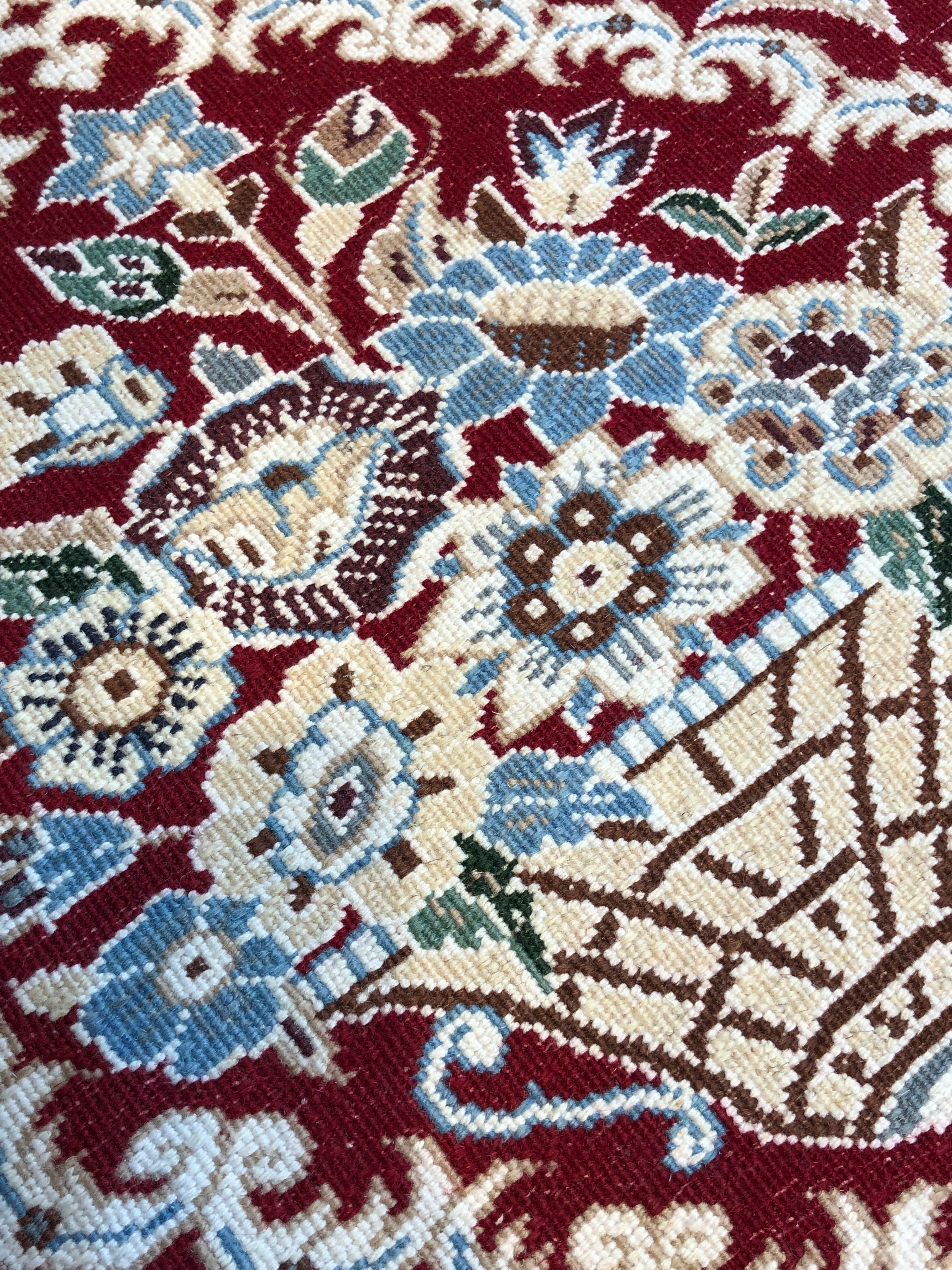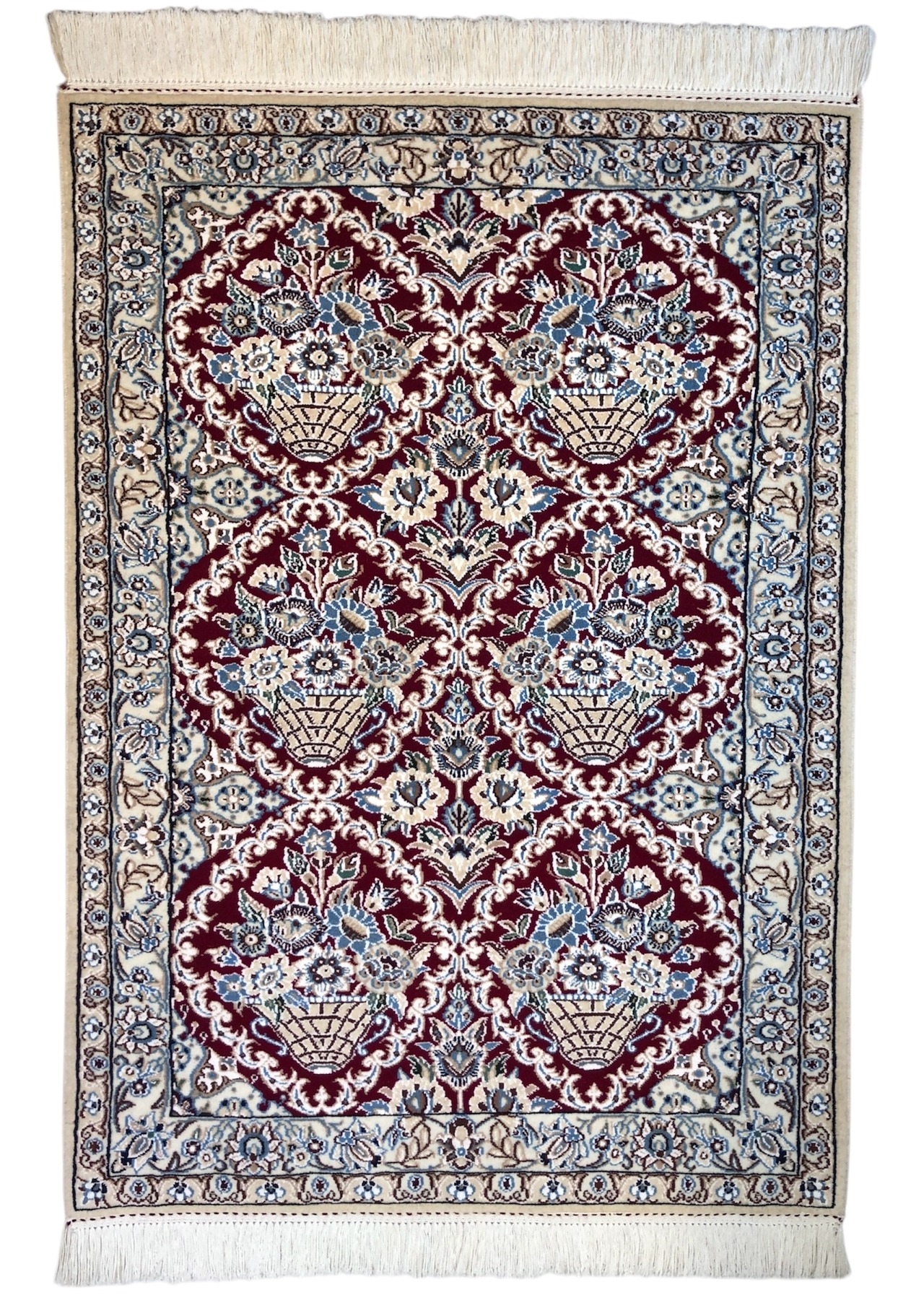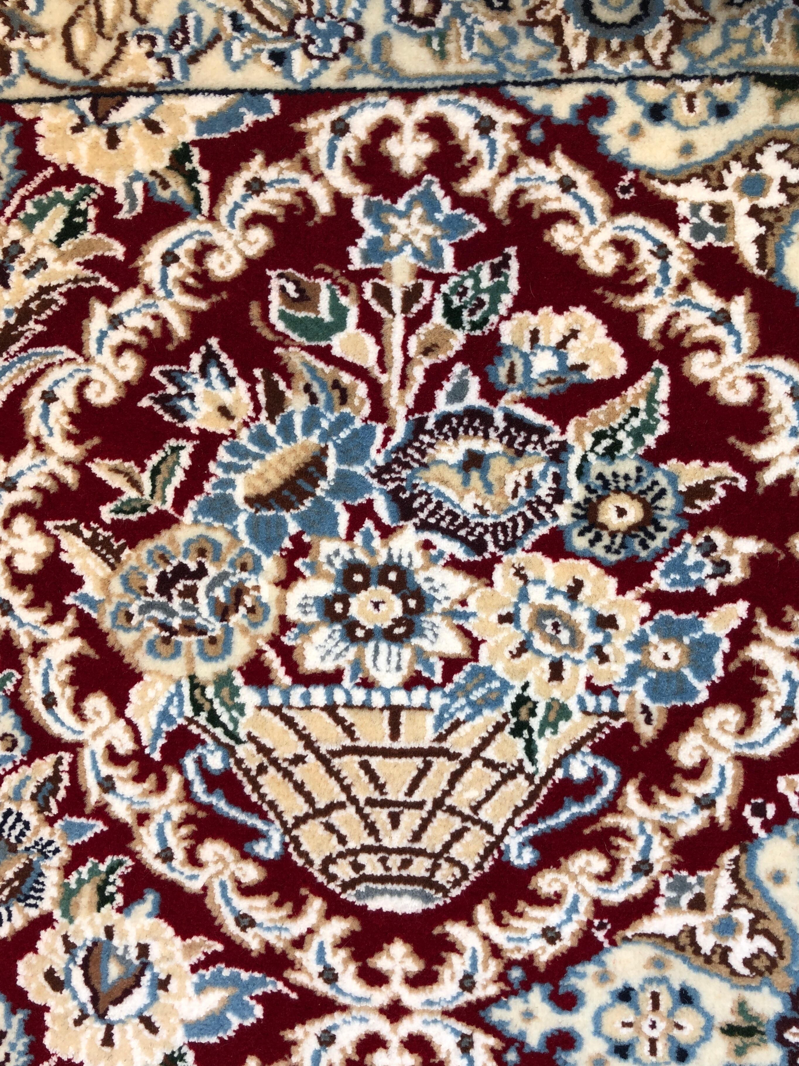 ナイン絨毯は、緻密な織りの職人技と質の高いウール素材で人気が高く、アイボリーやベージュを基調とした柔らかな色調で織られたエレガントなデザインで知られており、日本のみならず世界でも知られた絨毯です。