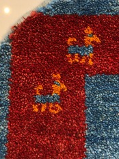 美しい草木染めの風合いをお楽しみいただける、ギャッベの丸型絨毯です。