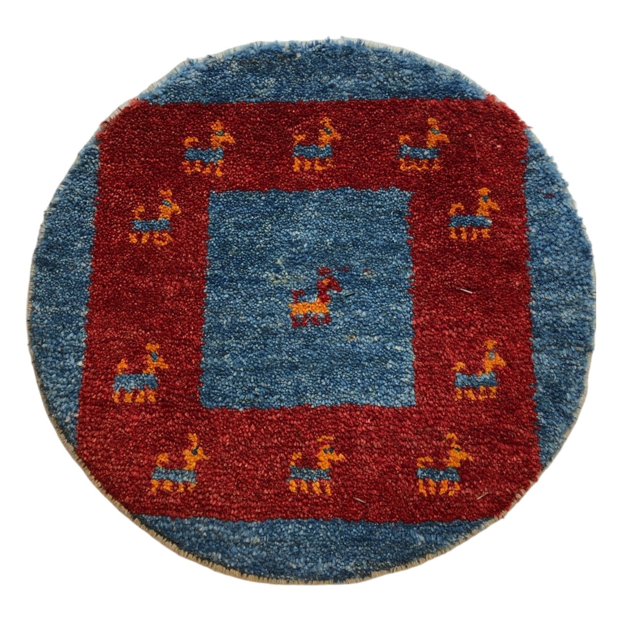 GABBEH 丸型 「ヤギ」ウール100% 草木染め 約40×40cm SHIRAZ産