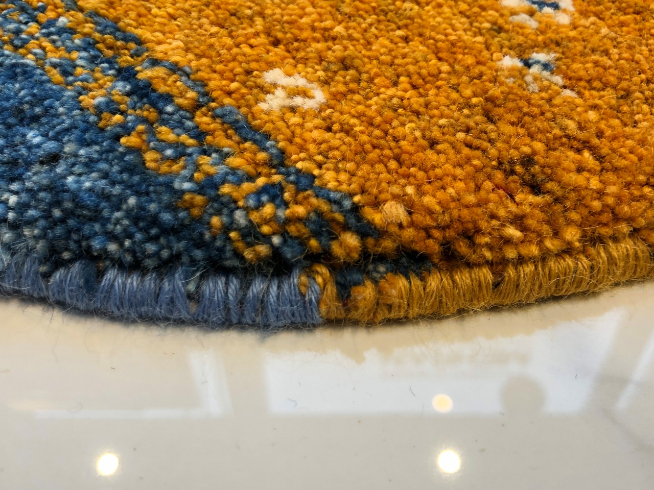 美しい草木染めの風合いをお楽しみいただける、ギャッベの丸型絨毯です。