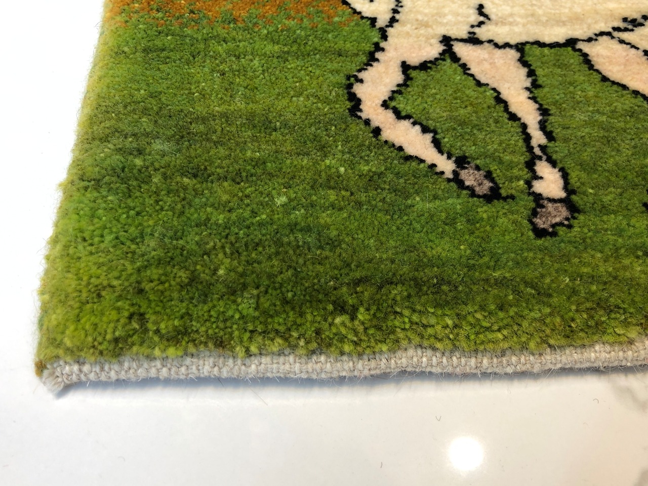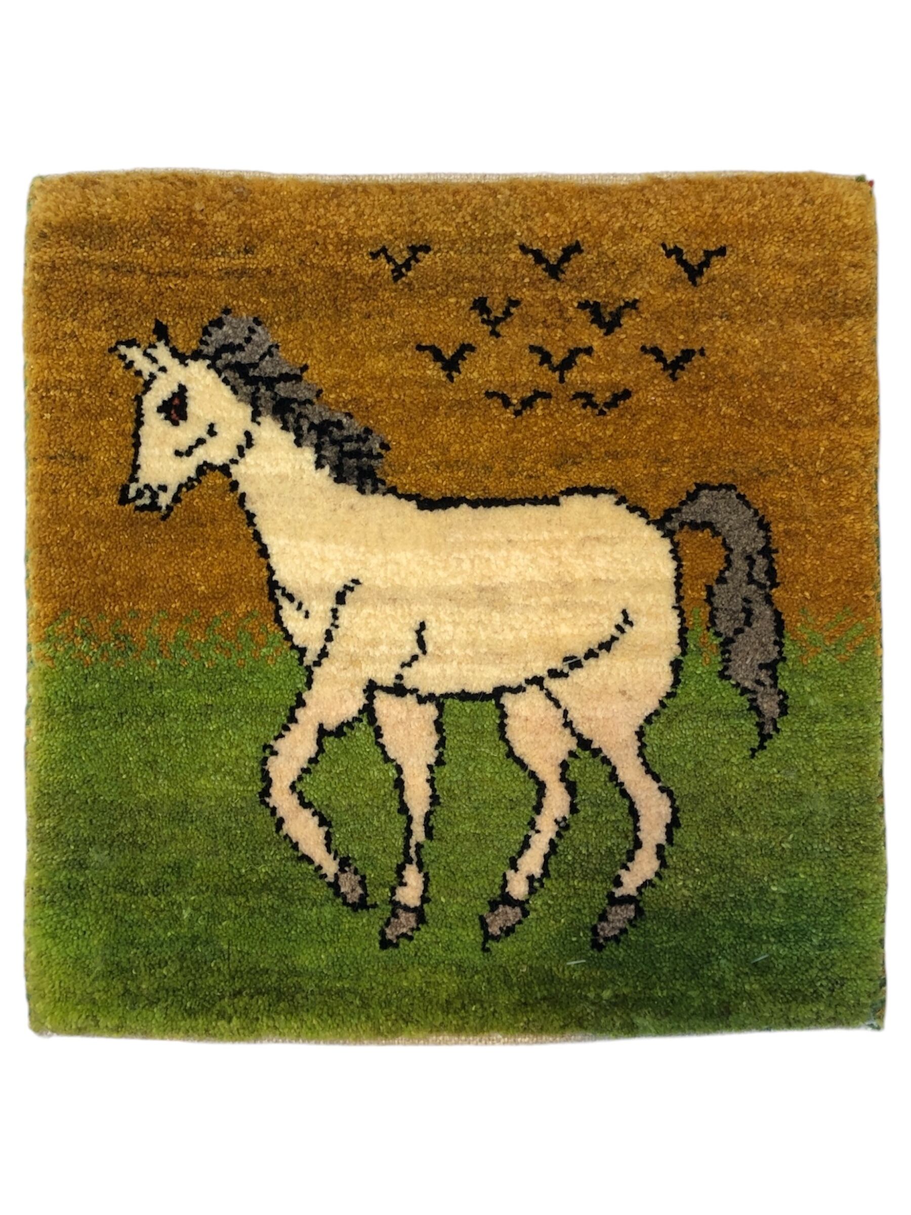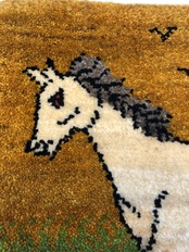 ウール100%を使用し、中央に馬が大きく描かれた、イランのSHIRAZ産の手織りギャッベです。