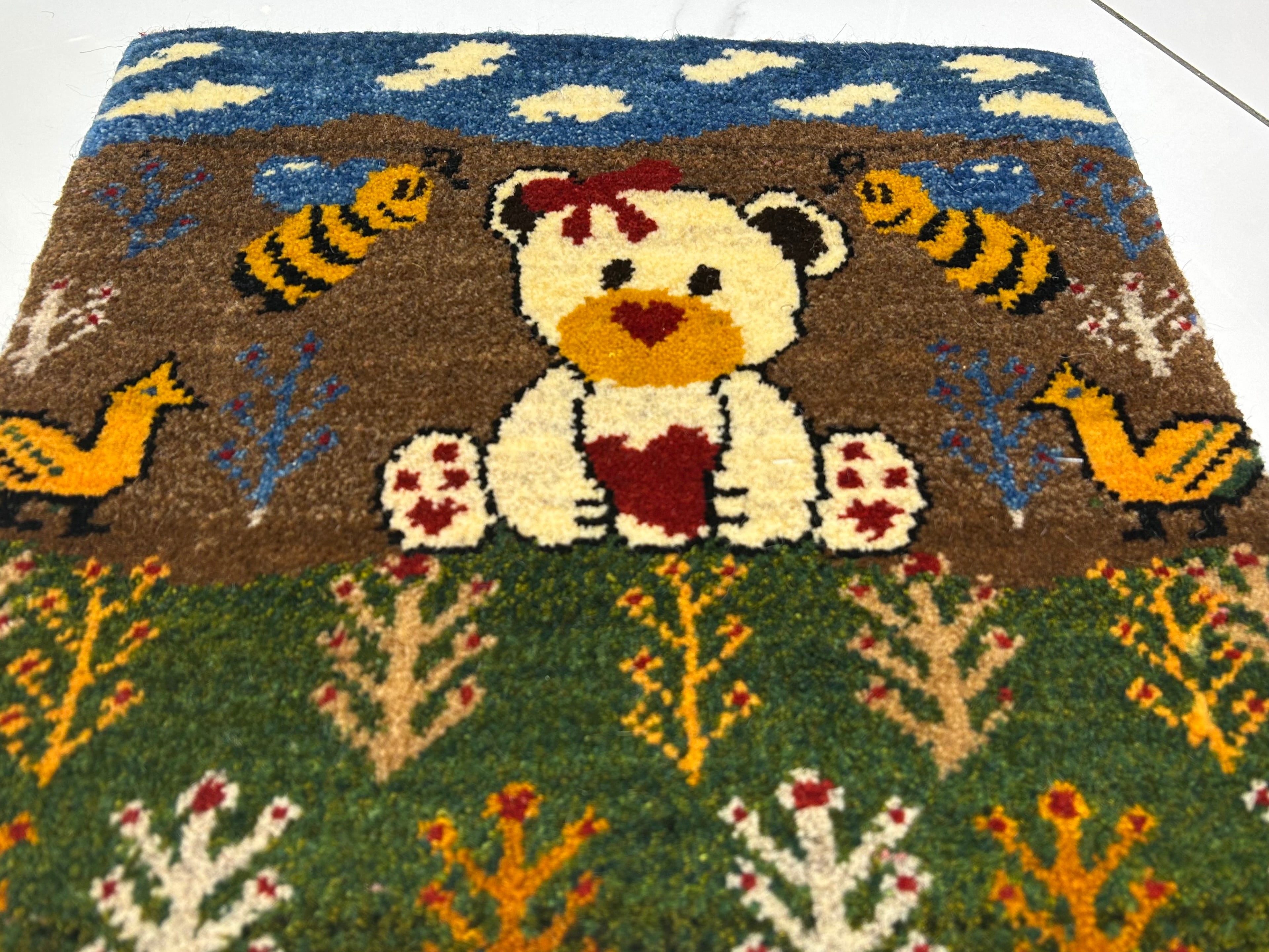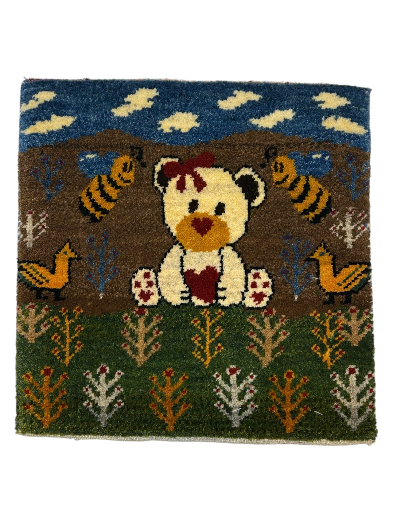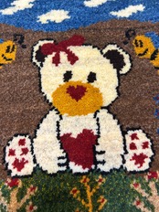 ウール100%を使用し、可愛いくまのデザインが特徴な、イランのSHIRAZ産の手織りギャッベです。