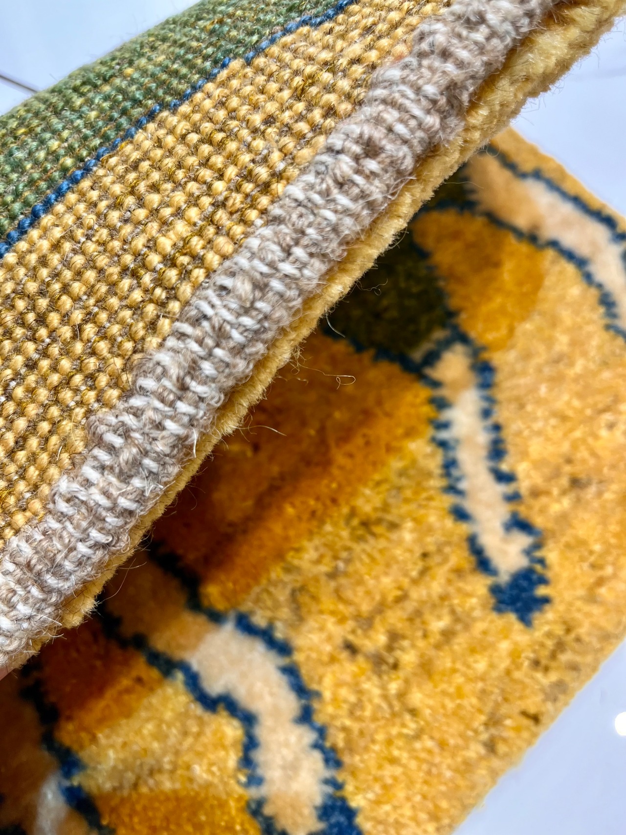 美しい手織りの世界をあなたのお部屋にお届けします。GABBEH「羊」羊毛(ウール100%)草木染めのSHIRAZ産絨毯は、伝統的な技法によって丁寧に織り上げられた特別な一品です。草木染めにより生まれた温かみのある色合いと、独特なデザインは見る人々を魅了し、自然の息吹を感じさせます。この絨毯は、インテリアに心地よい温もりを添え、どなたでもリラックスできる空間を演出します。サイズは約46×43cm(房含まず)で、さまざまな場所にぴったりとフィットします。