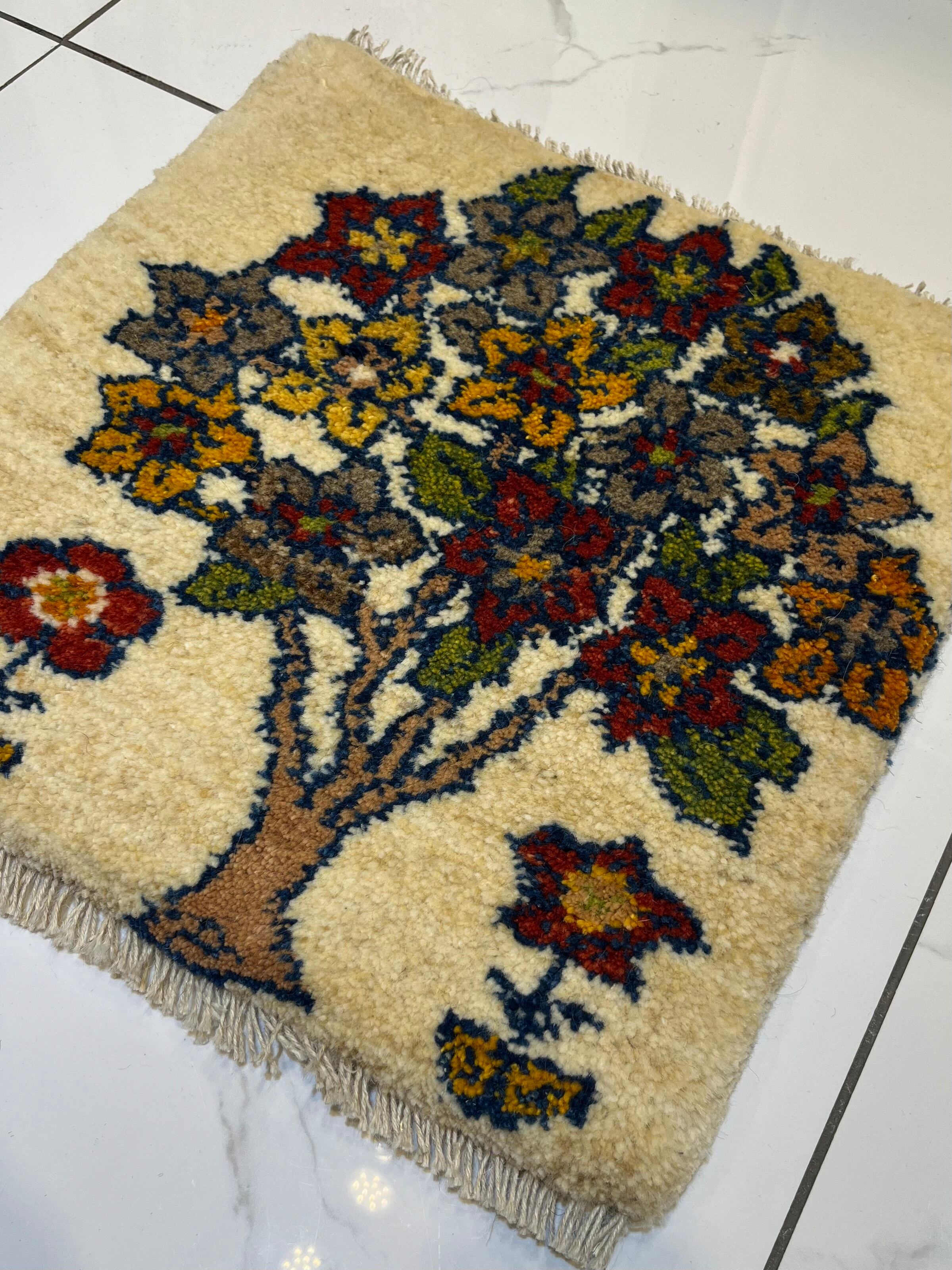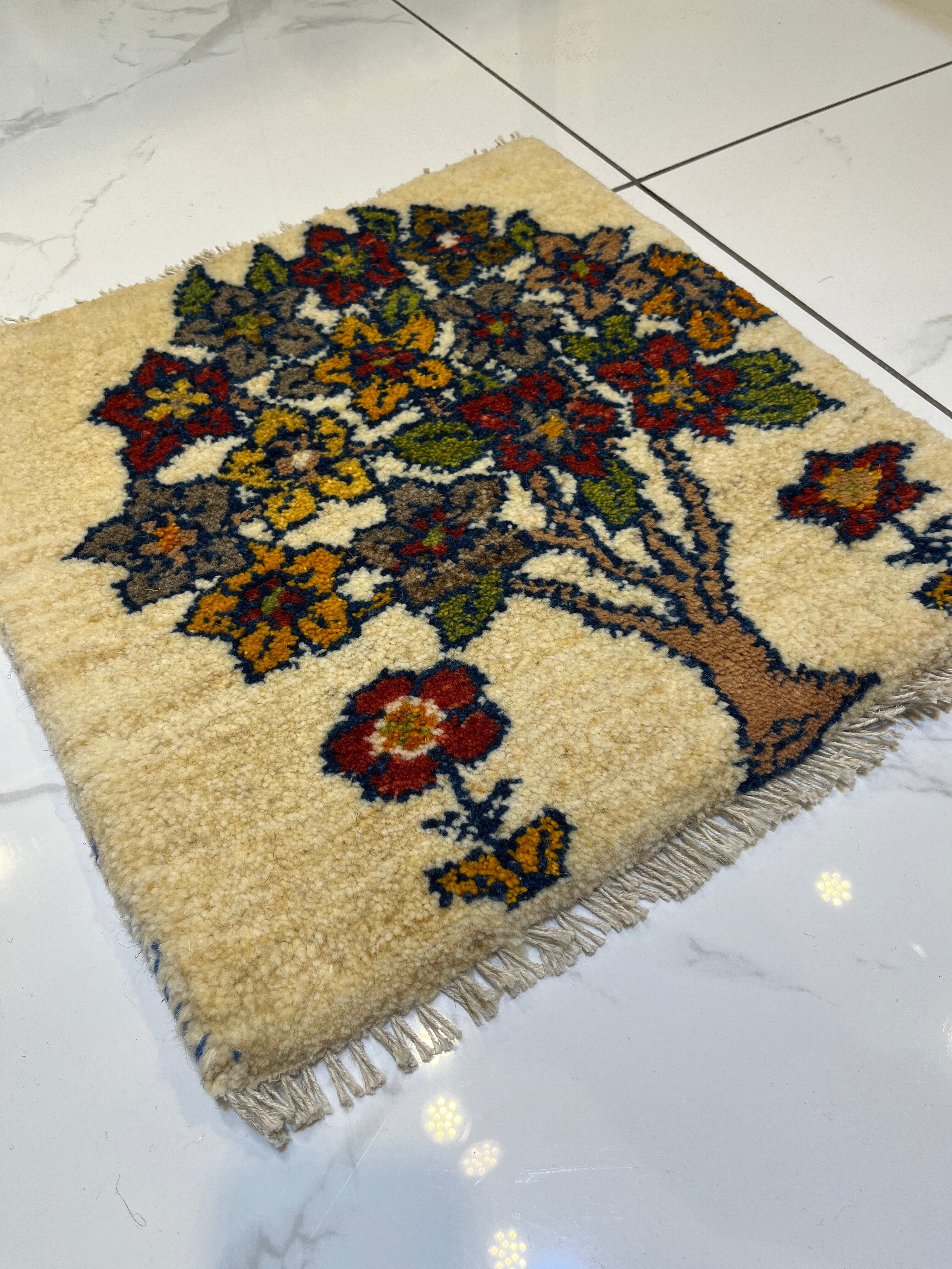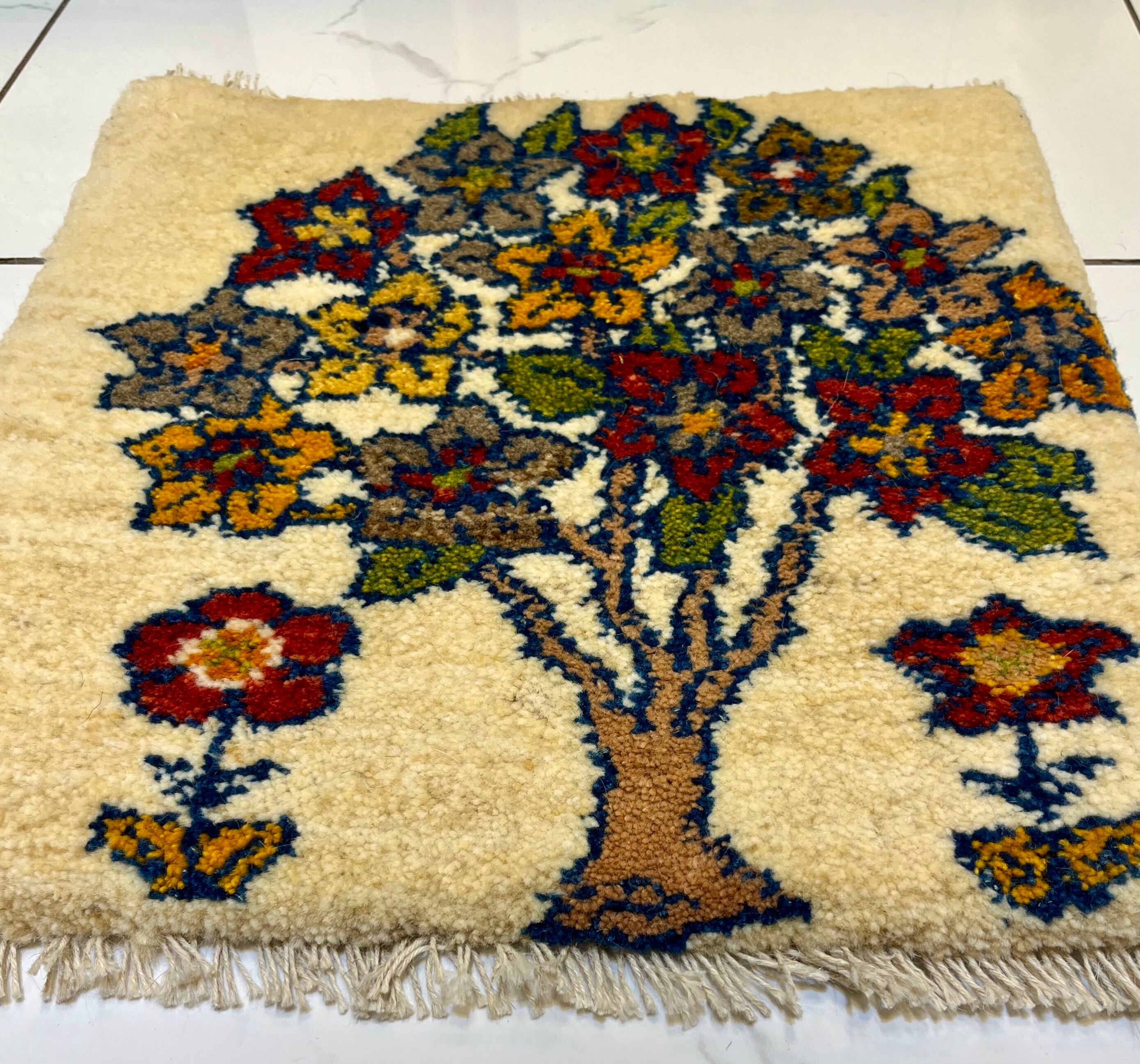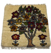 GABBEH 「お花 生命の樹」ウール100% 草木染め 約45x43cmSHIRAZ産