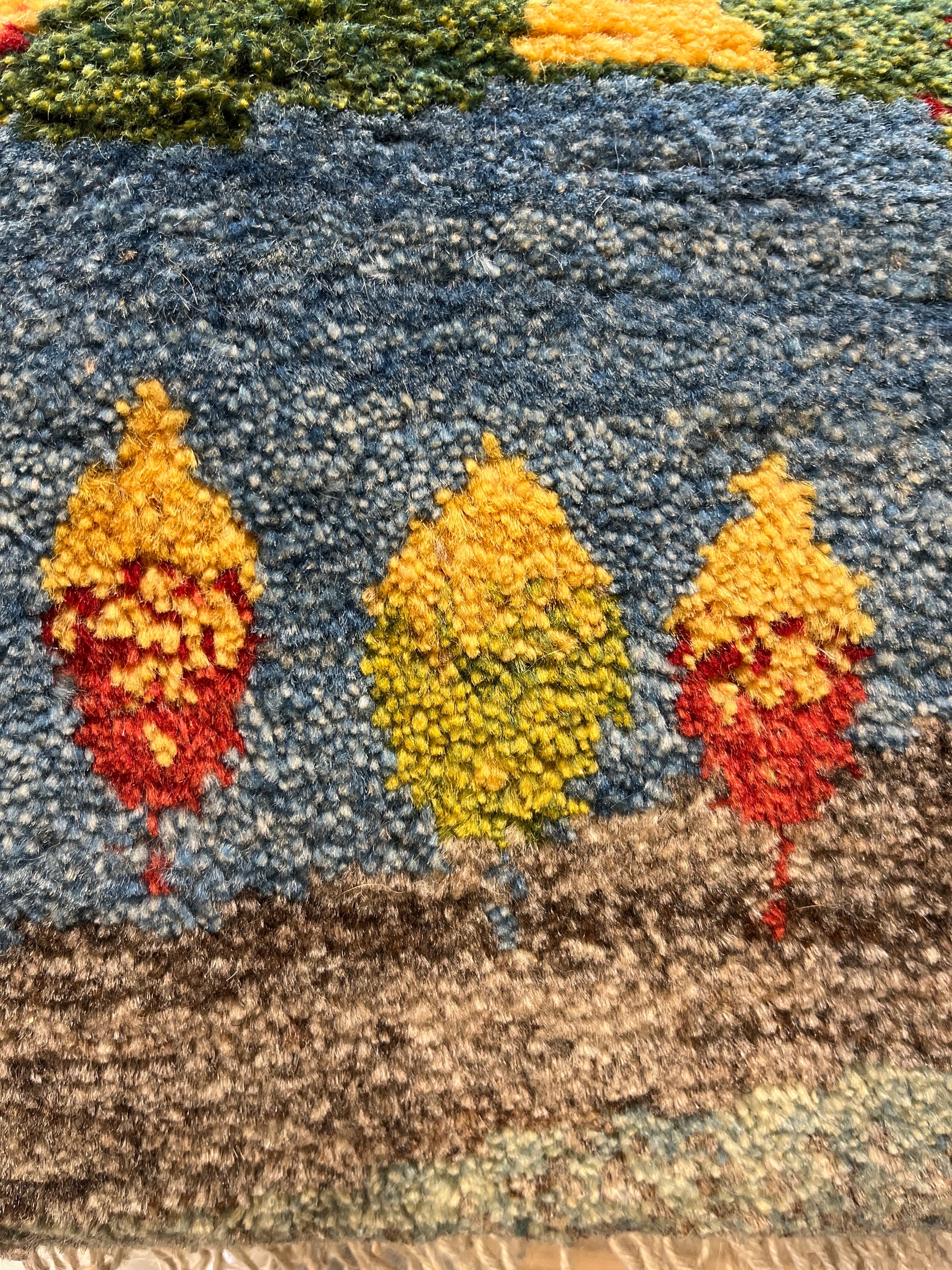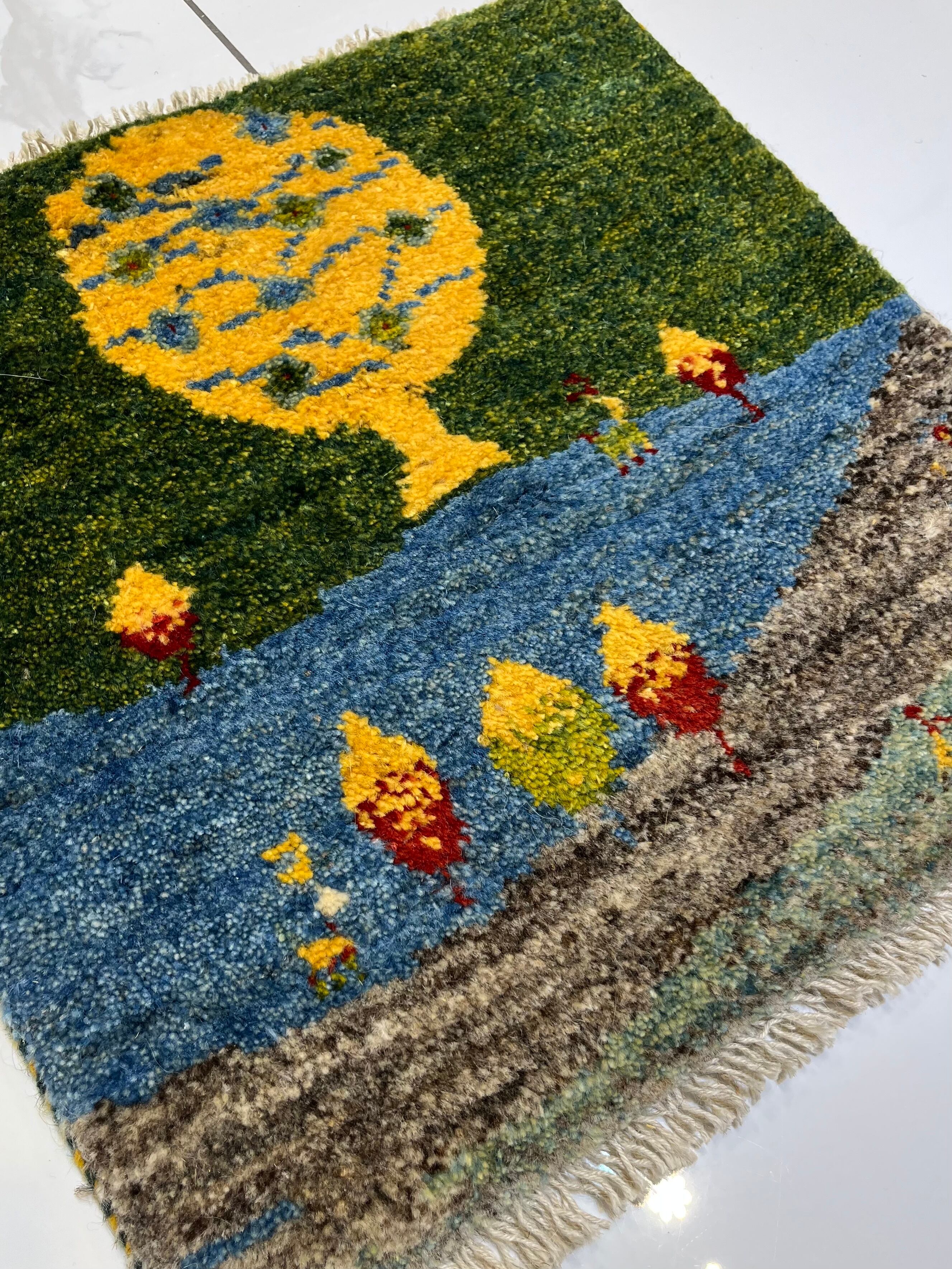 GABBEH 「生命の樹とヤギ」ウール100% 草木染め 約44x 43cm SHIRAZ産