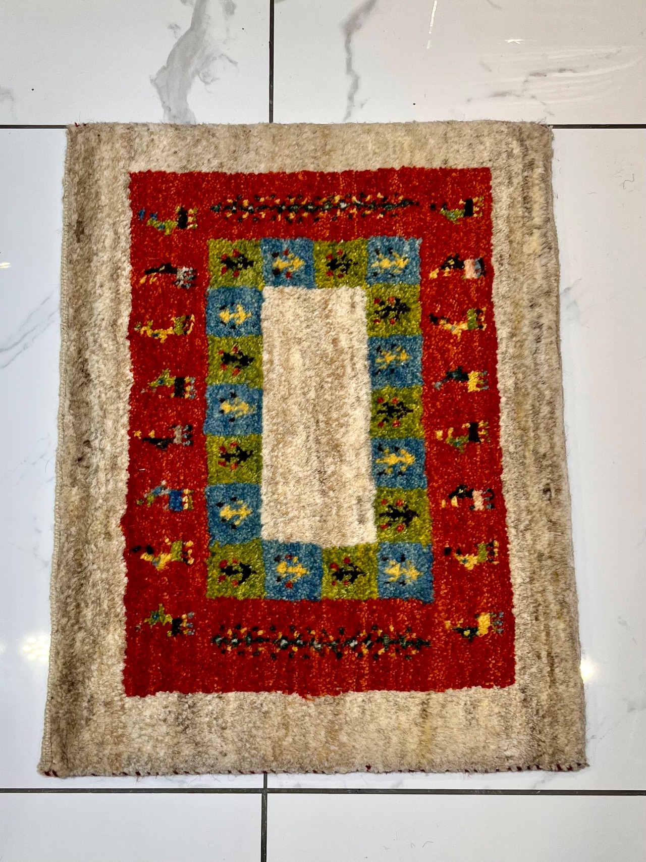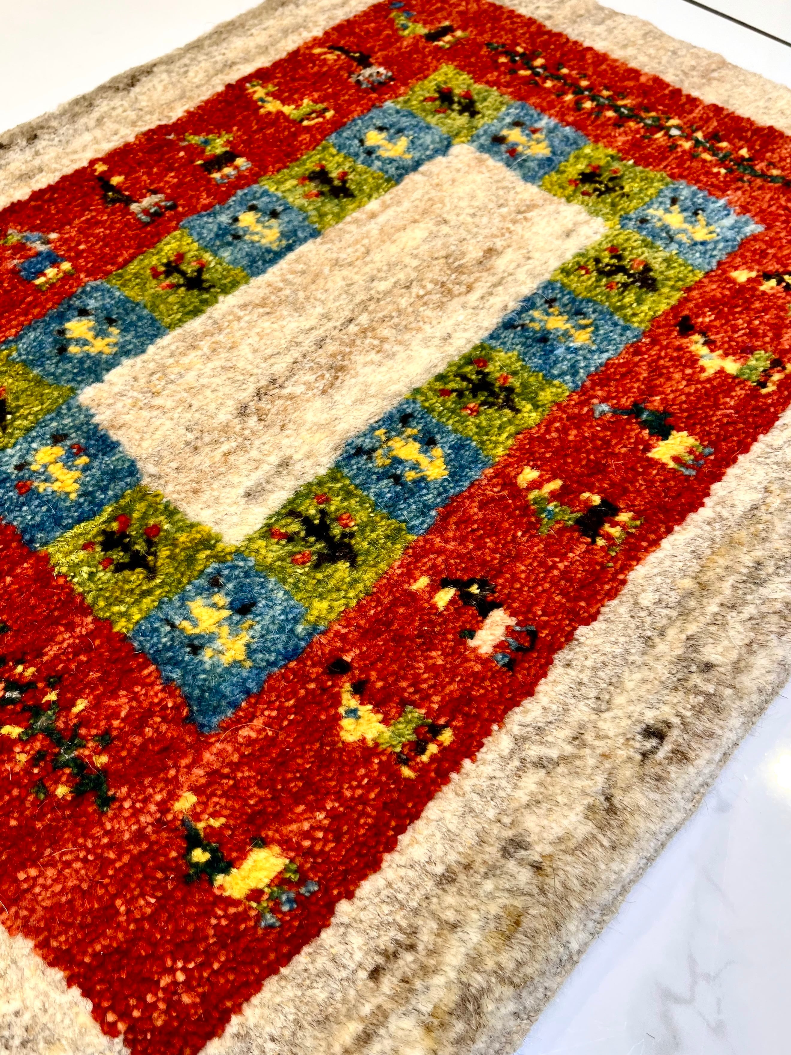 GABBEH 「生命の樹とヤギ」ウール100% 草木染め 約58x 43cm SHIRAZ産