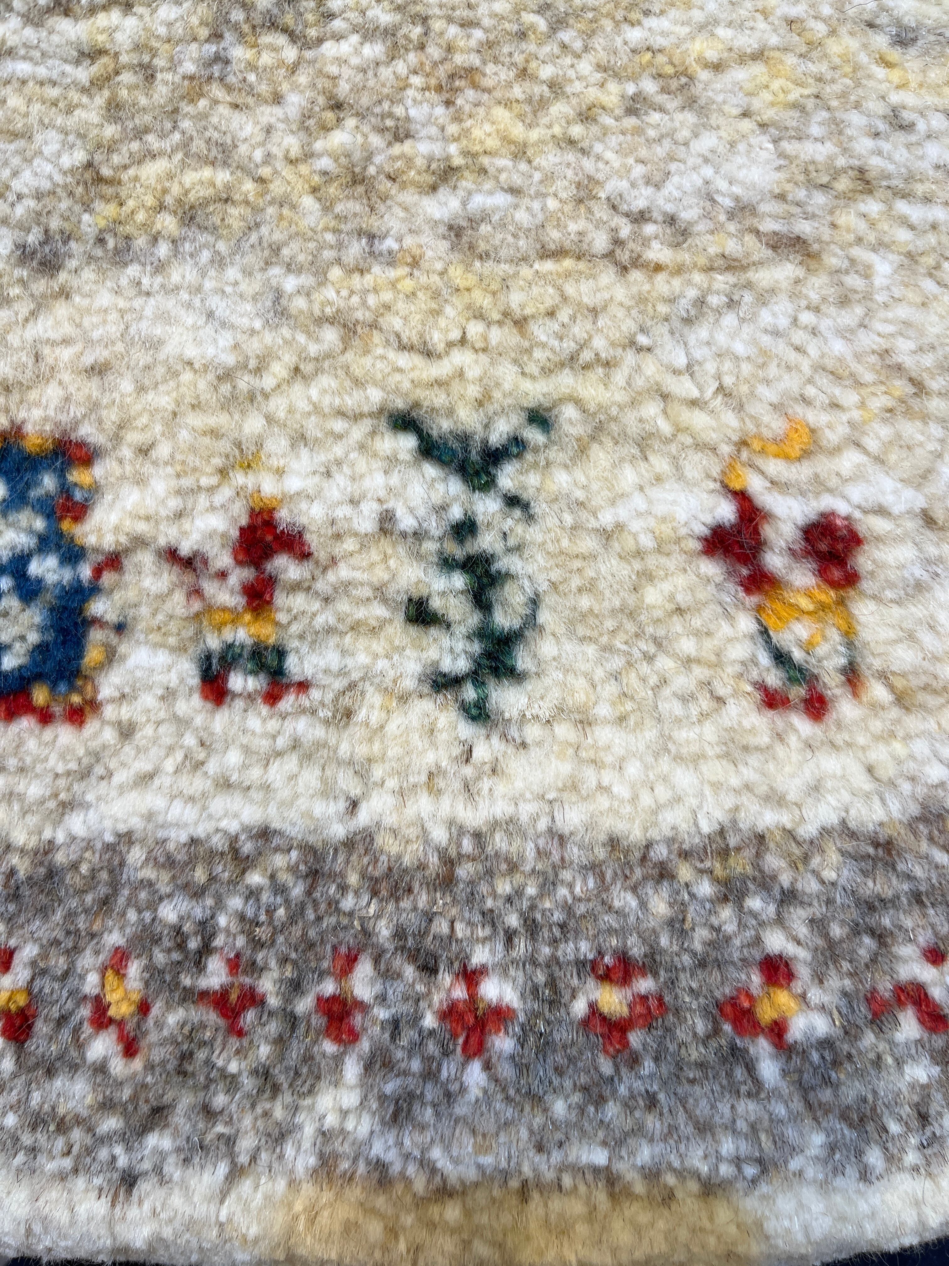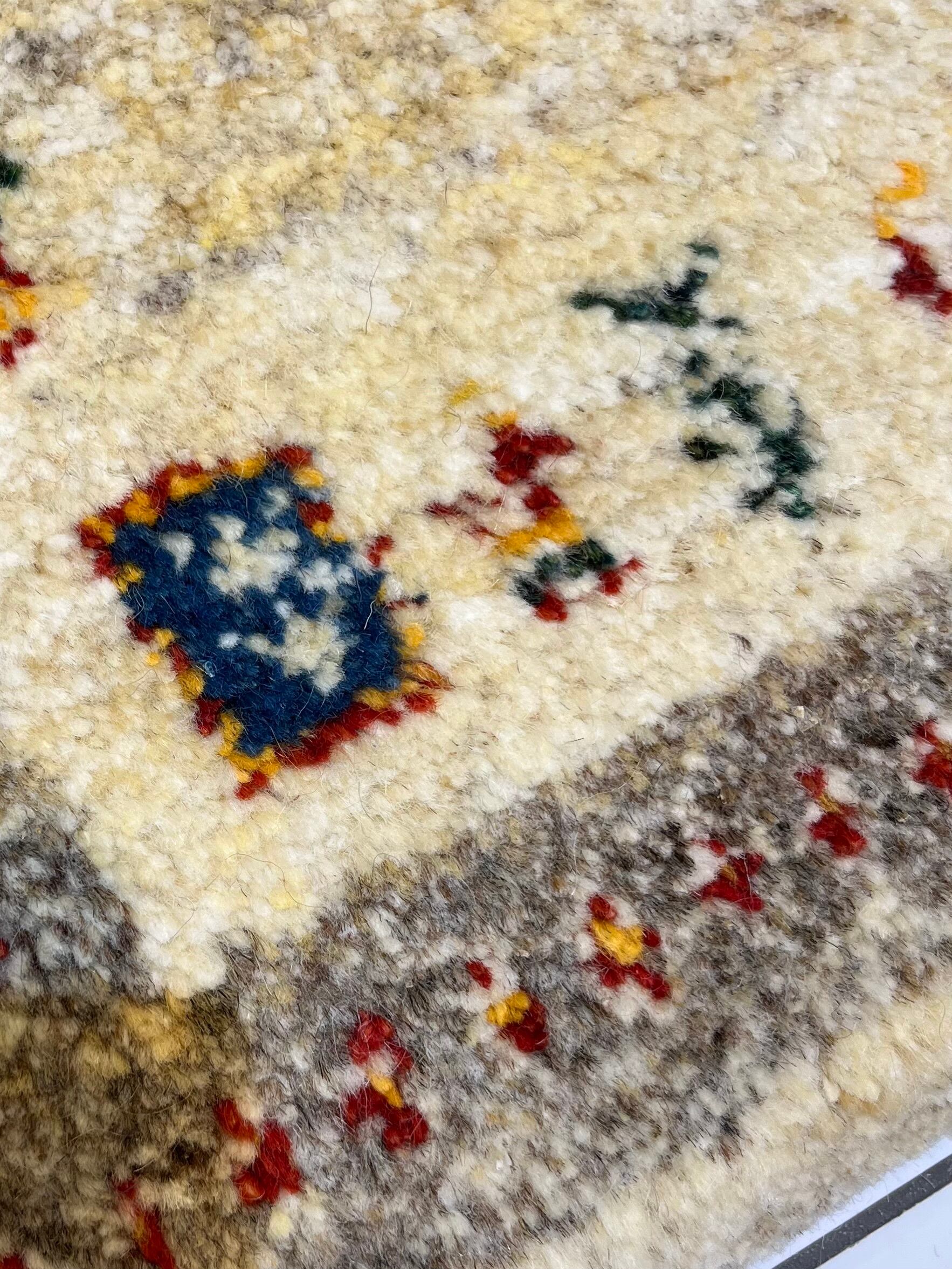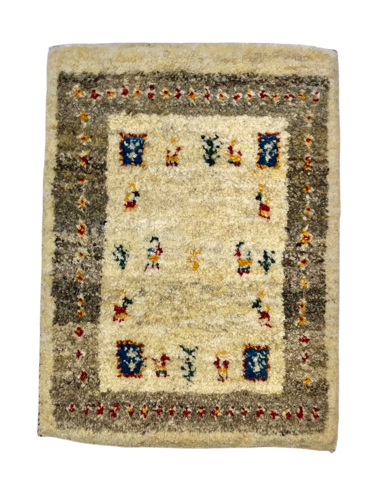 美しい手織りの世界をあなたのお部屋にお届けします。GABBEH「生命の樹とヤギ」ウール100%草木染めのSHIRAZ産絨毯は、伝統的な技法によって丁寧に織り上げられた特別な一品です。草木染めにより生まれた自然の温かみと、「生命の樹」とヤギの象徴的なデザインが調和し、あなたの空間に安らぎをもたらします。サイズは約58x43cm(房含まず)で、様々なシーンで活躍します。