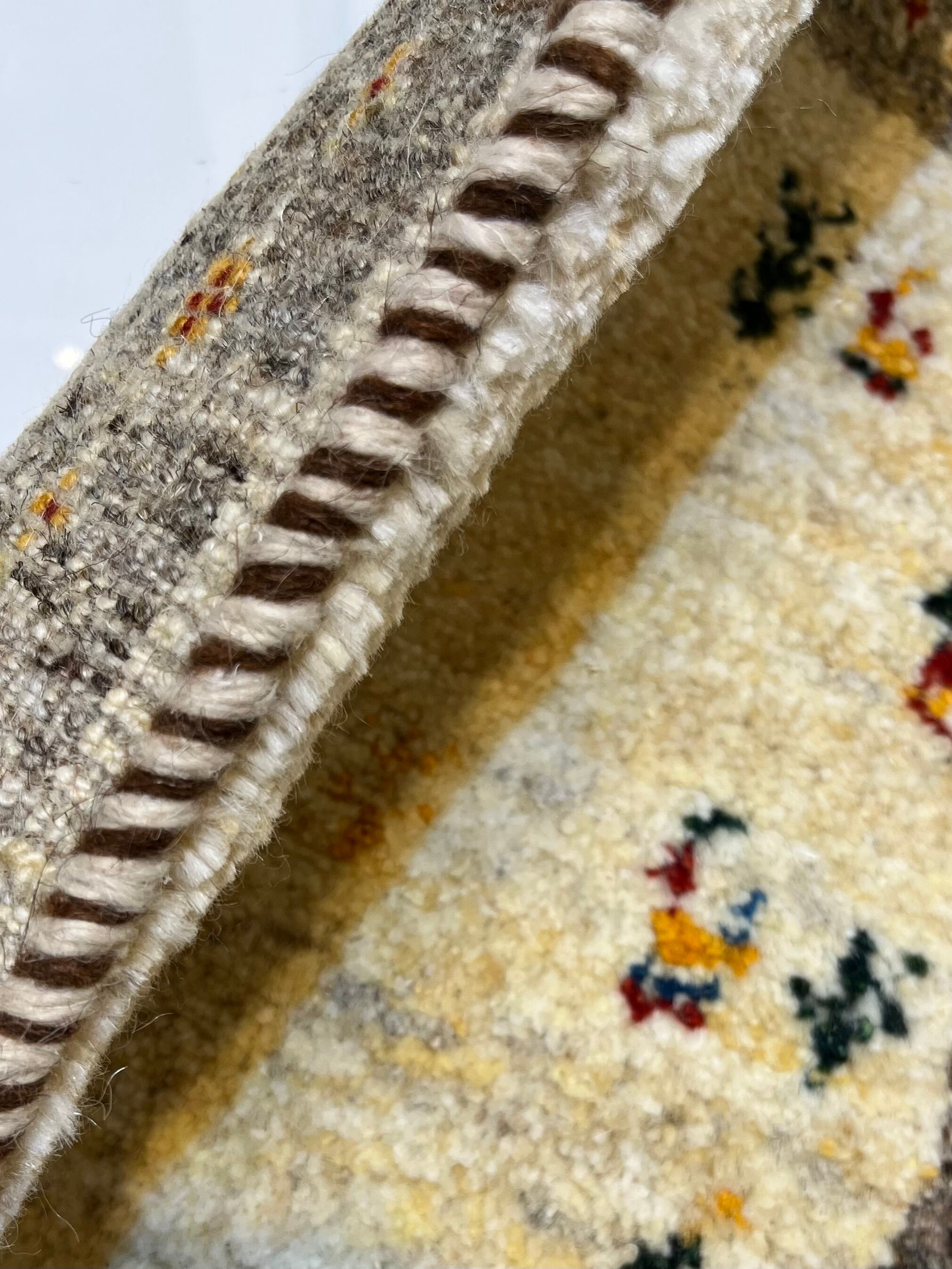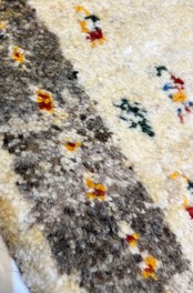 美しい手織りの世界をあなたのお部屋にお届けします。GABBEH「生命の樹とヤギ」ウール100%草木染めのSHIRAZ産絨毯は、伝統的な技法によって丁寧に織り上げられた特別な一品です。草木染めにより生まれた自然の温かみと、「生命の樹」とヤギの象徴的なデザインが調和し、あなたの空間に安らぎをもたらします。サイズは約58x43cm(房含まず)厚さ約2.2cmで、様々なシーンで活躍します。