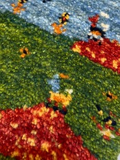 ウール100%のナチュラルな色合いと草木染め、藍染めによって生み出された柔らかなトーンが特徴で、インテリアに温かい雰囲気を演出します。