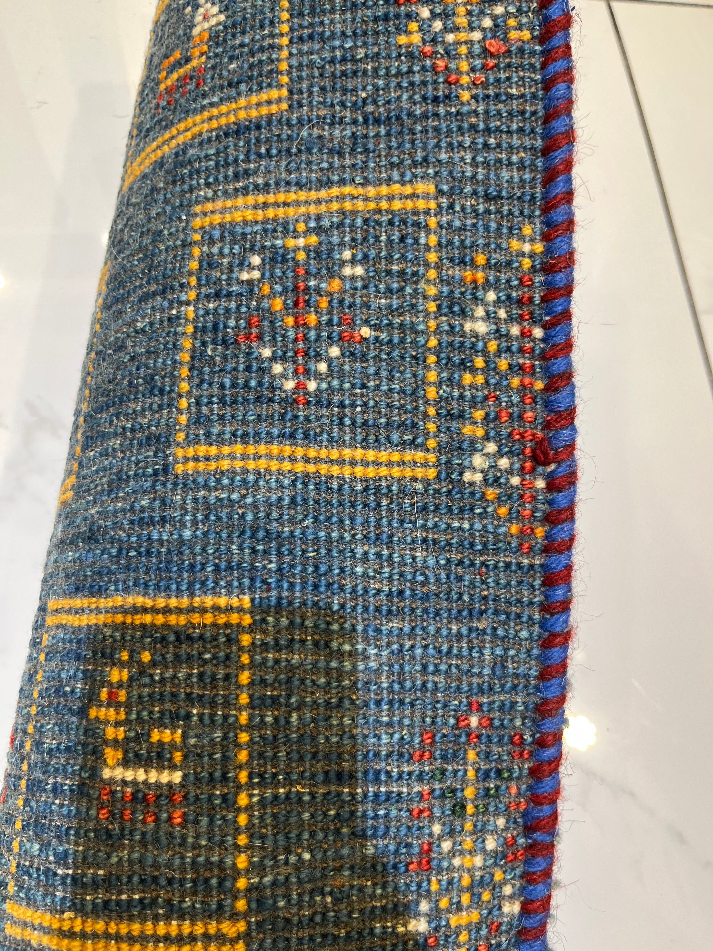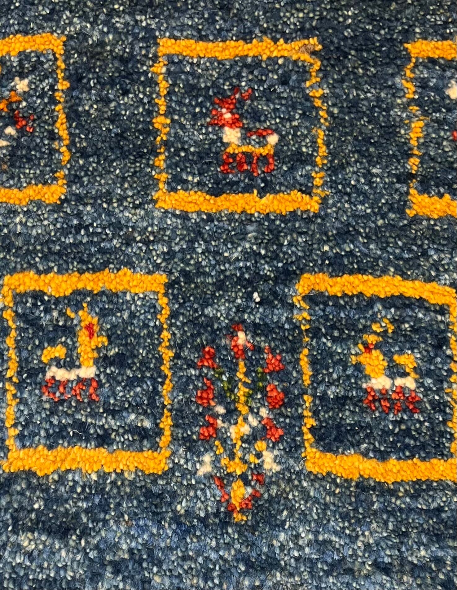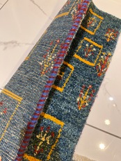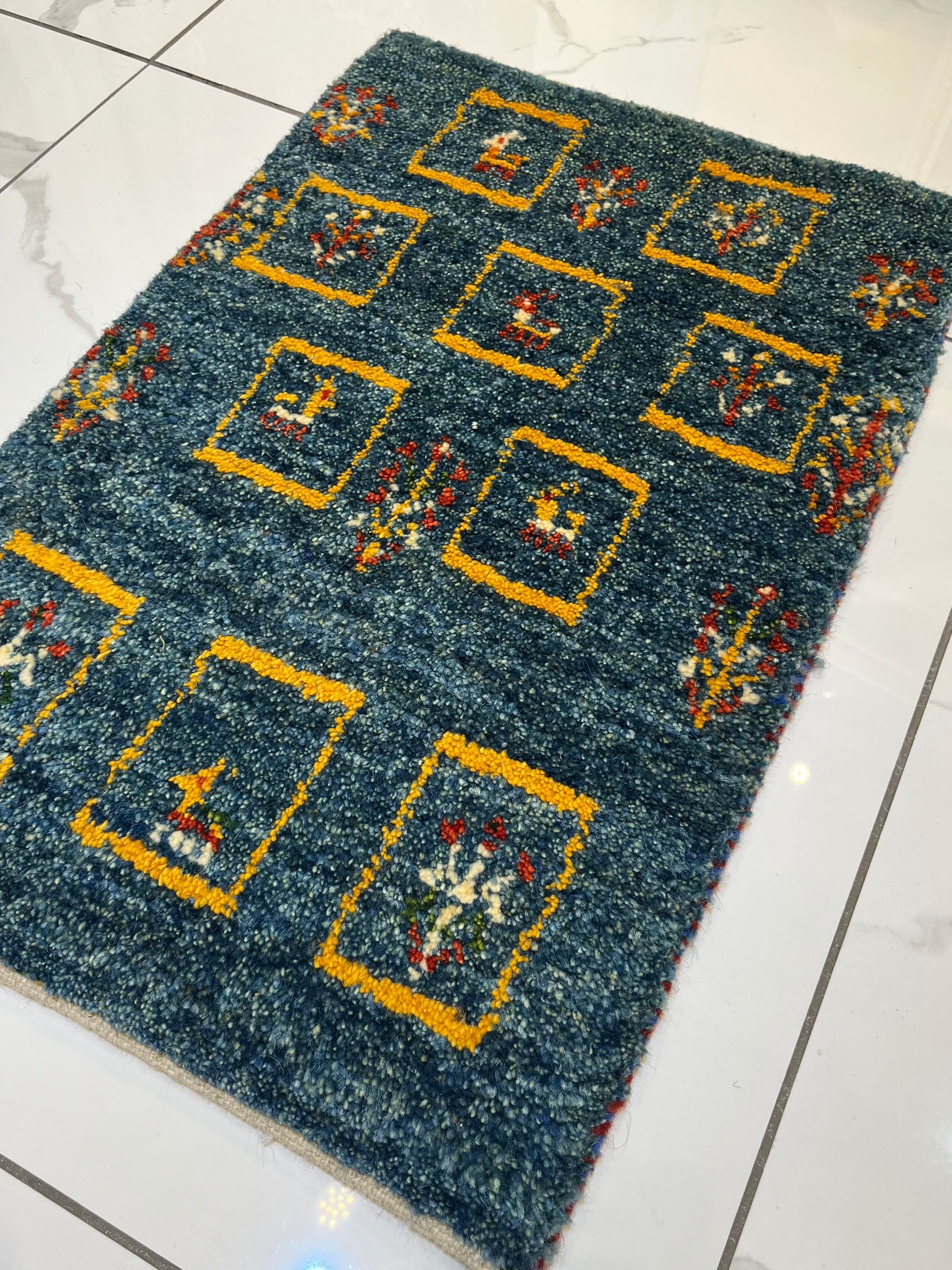美しい手織りの世界をあなたのお部屋にお届けします。GABBEH「窓とヤギ」ウール100%草木染めのSHIRAZ産絨毯は、伝統的な技法によって丁寧に織り上げられた特別な一品です。落ち着いた藍染めの色と「窓とヤギ」の象徴的なデザインが調和し、あなたの空間に温かみと安らぎをもたらします。サイズは約64x40cm(房含まず)厚さ約1.9cmで、様々なシーンでご使用いただけます。