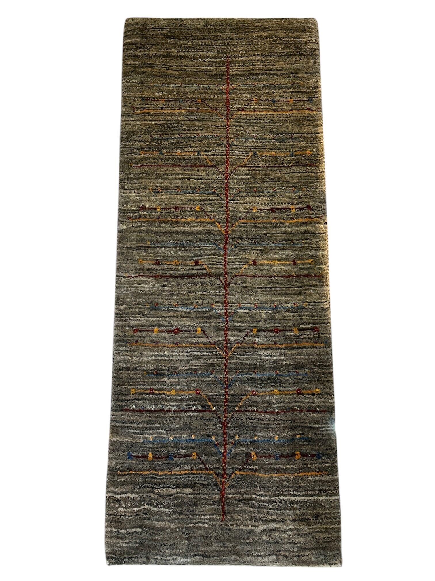 美しい手織りの世界をあなたのお部屋にお届けします。GABBEH「生命の樹」ウール100%草木染めのSHIRAZ産絨毯は、伝統的な技法によって丁寧に織り上げられた特別な一品です。自然の草木を使用した染色によって生まれたナチュラルカラーと、「生命の樹」の象徴的なデザインが調和し、あなたの空間に豊かな美しさと安らぎをもたらします。サイズは約118x45cm(房含まず)厚さ約1.8cmで、キッチンや廊下などでご使用いただけます。
