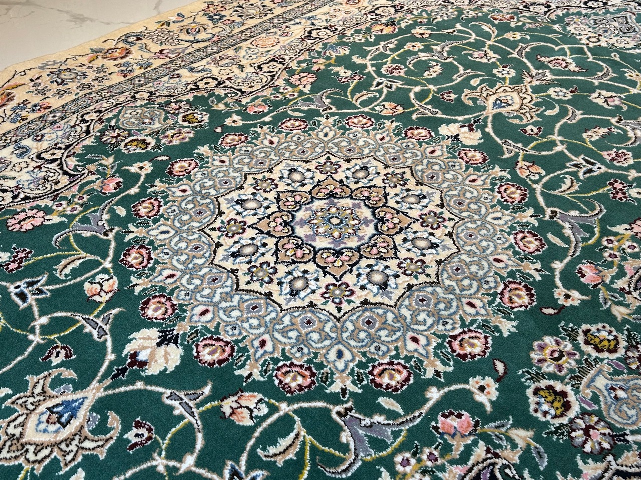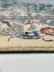 ナイン絨毯は、緻密な織りの職人技と質の高いウール素材で人気が高く、アイボリーやベージュを基調とした柔らかな色調で織られたエレガントなデザインで知られており、日本のみならず世界でも知られた絨毯です。