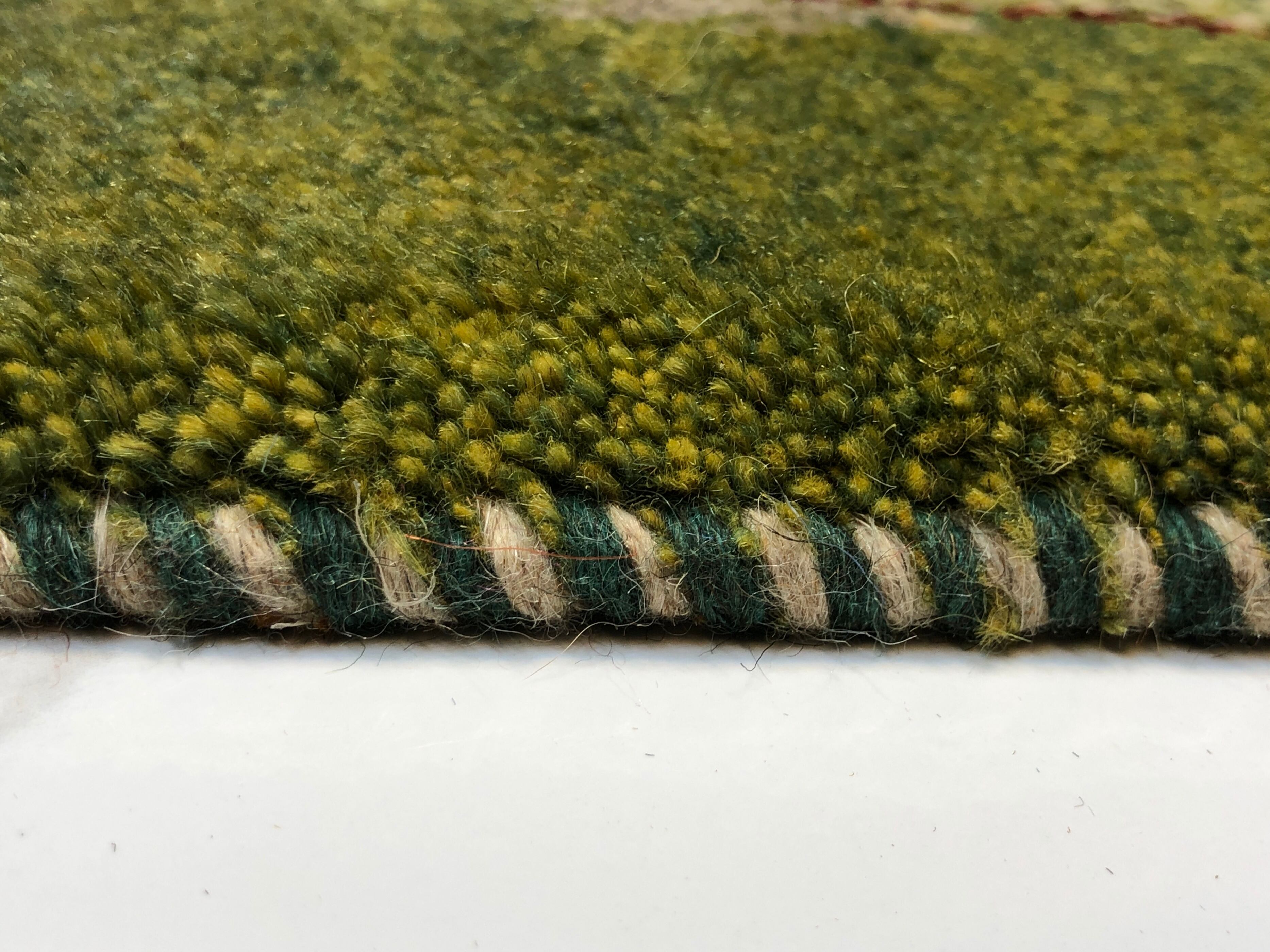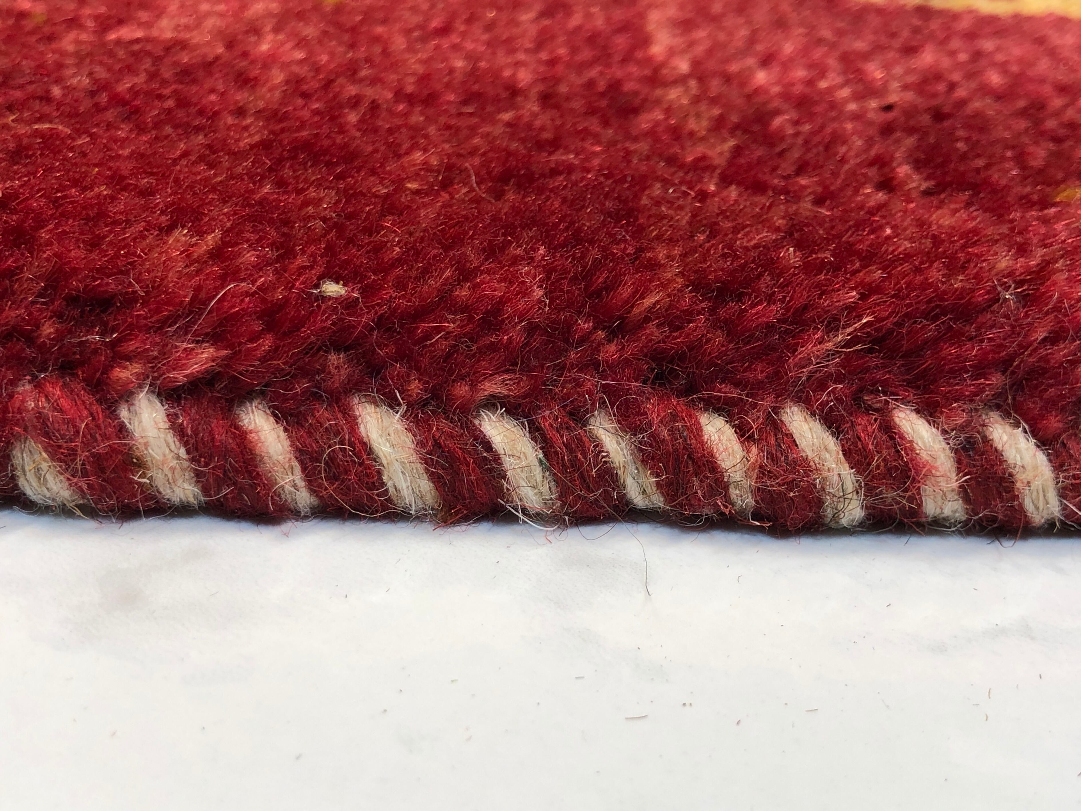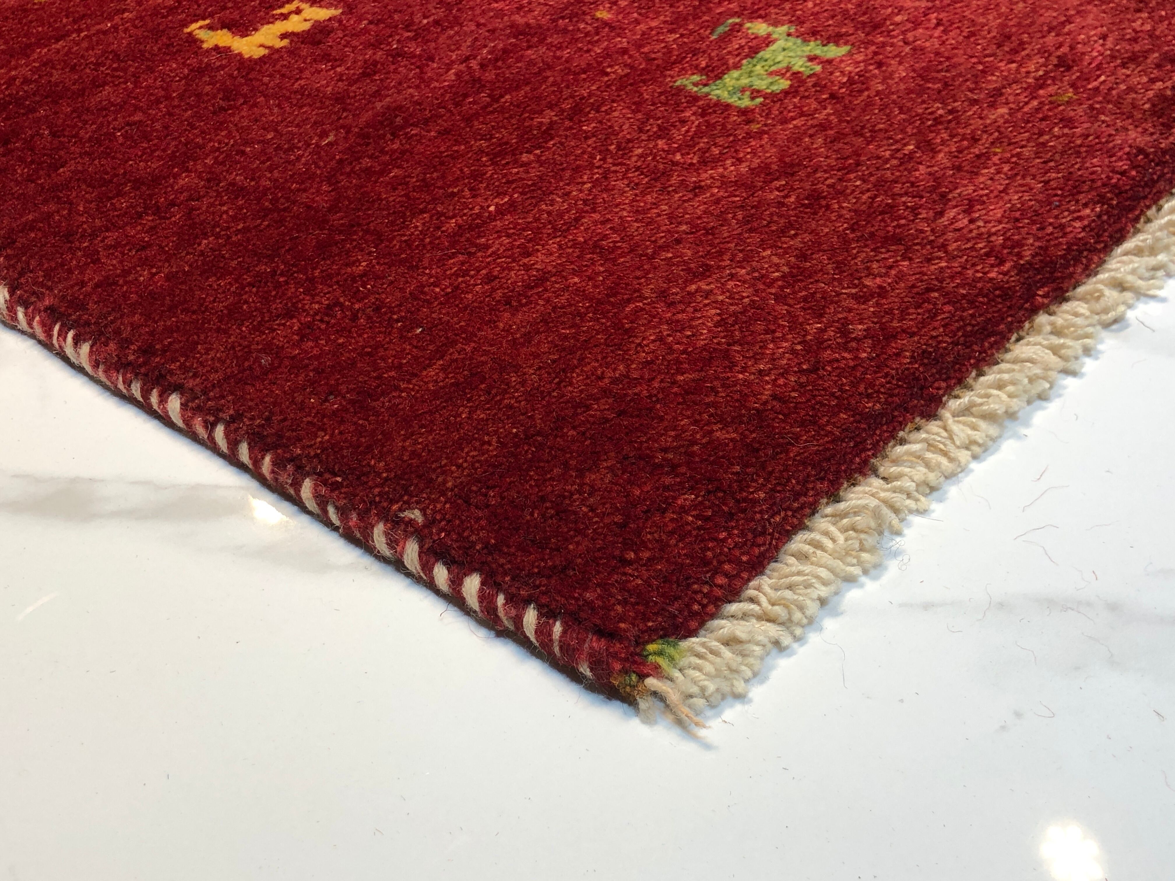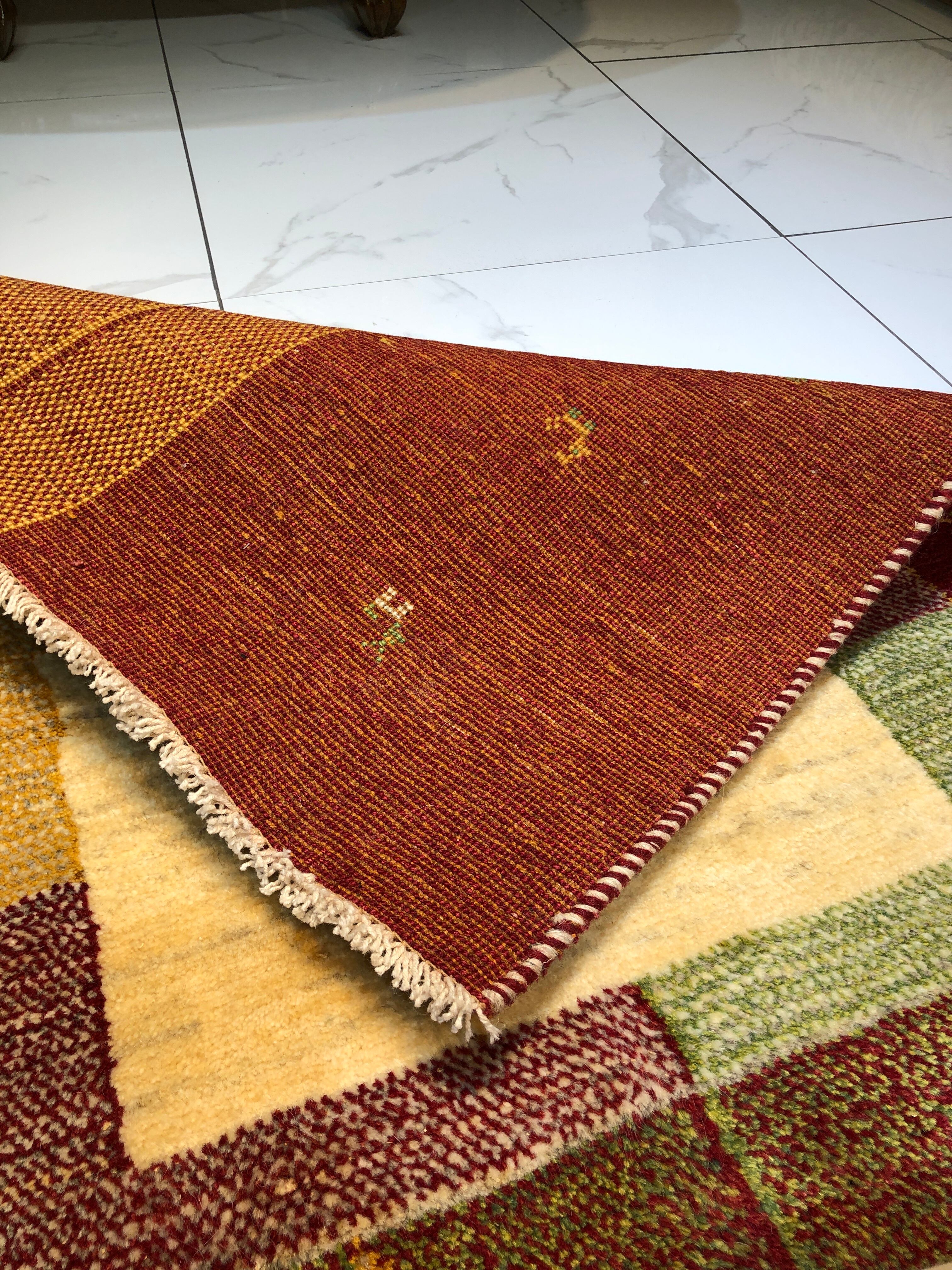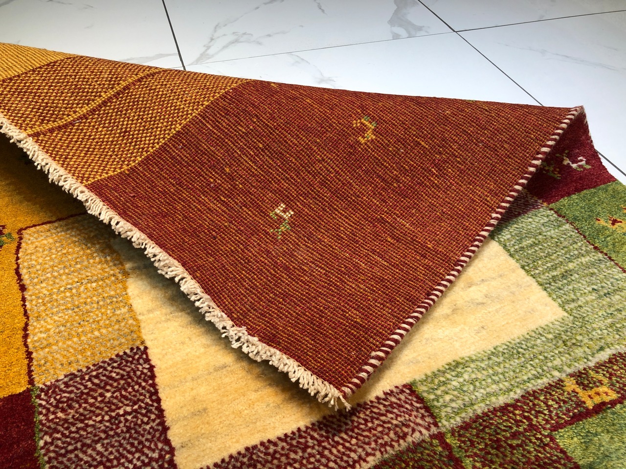 ウール100%を使用し、イランSHIRAZ産の手織りGABBEHです。草木染めにより生まれた温かみのある色合いと独特なデザインは、見る人々を魅了し、自然の優しさを感じさせます。この絨毯は、インテリアに温もり添え、リラックスできる空間を演出します。彩り豊かな色合いと豊かな表情が、お部屋の雰囲気を一層引き立てます。