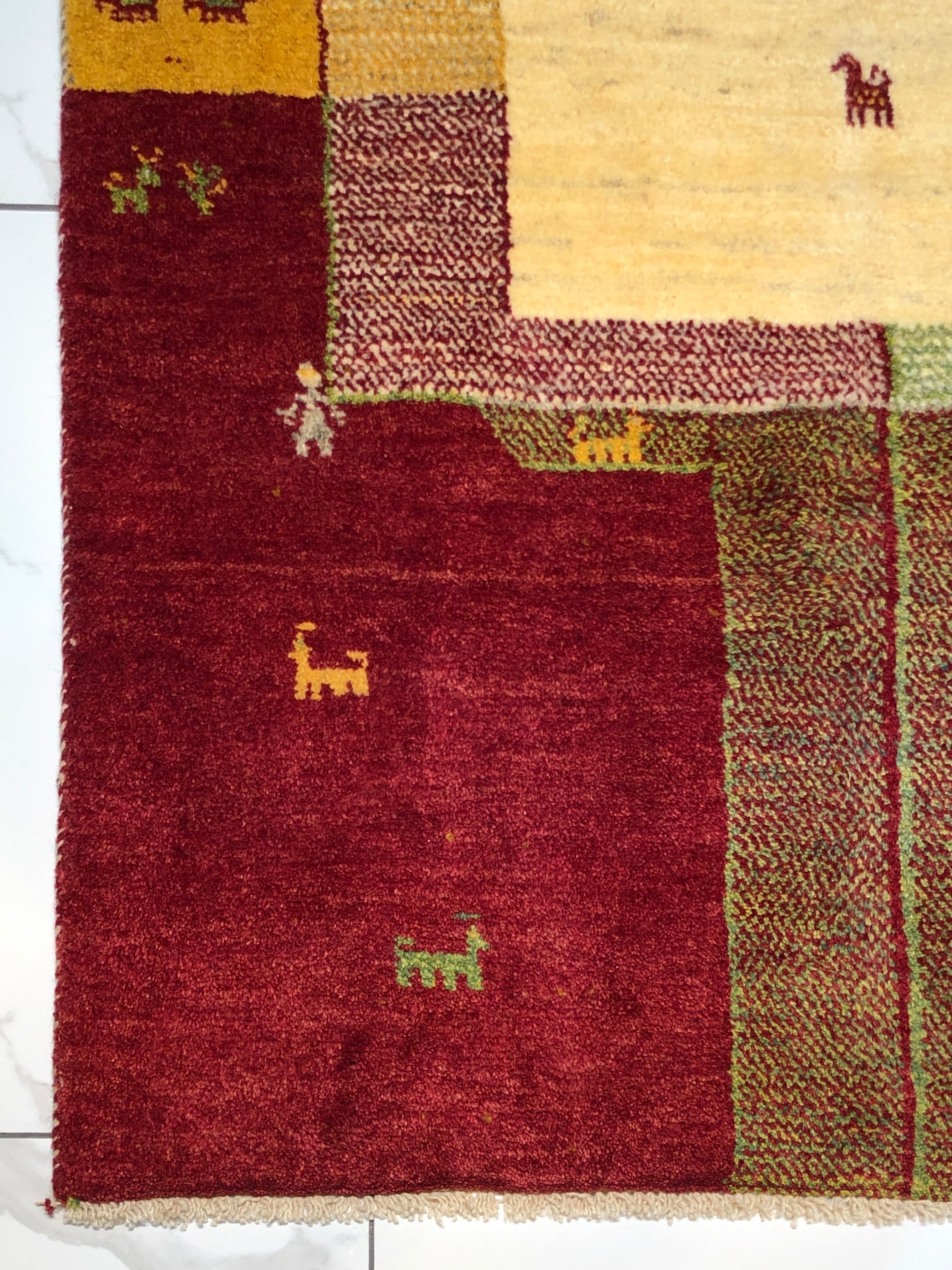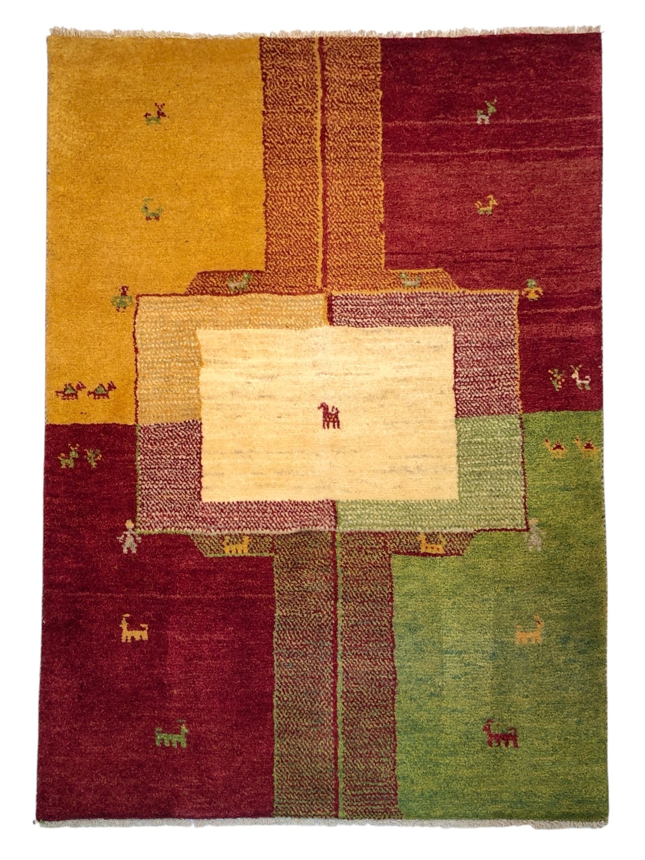 GABBEH 「ヤギとラクダ」ウール100% 草木染め 約145×96cm SHIRAZ産